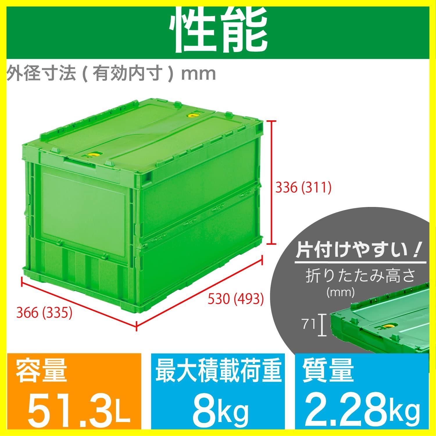 トラスコ中山TRUSCO) 収納ケース 収納ボックス 薄型折りたたみコンテナ ロックフタ付 グリーン 50L TR-C50B-GN