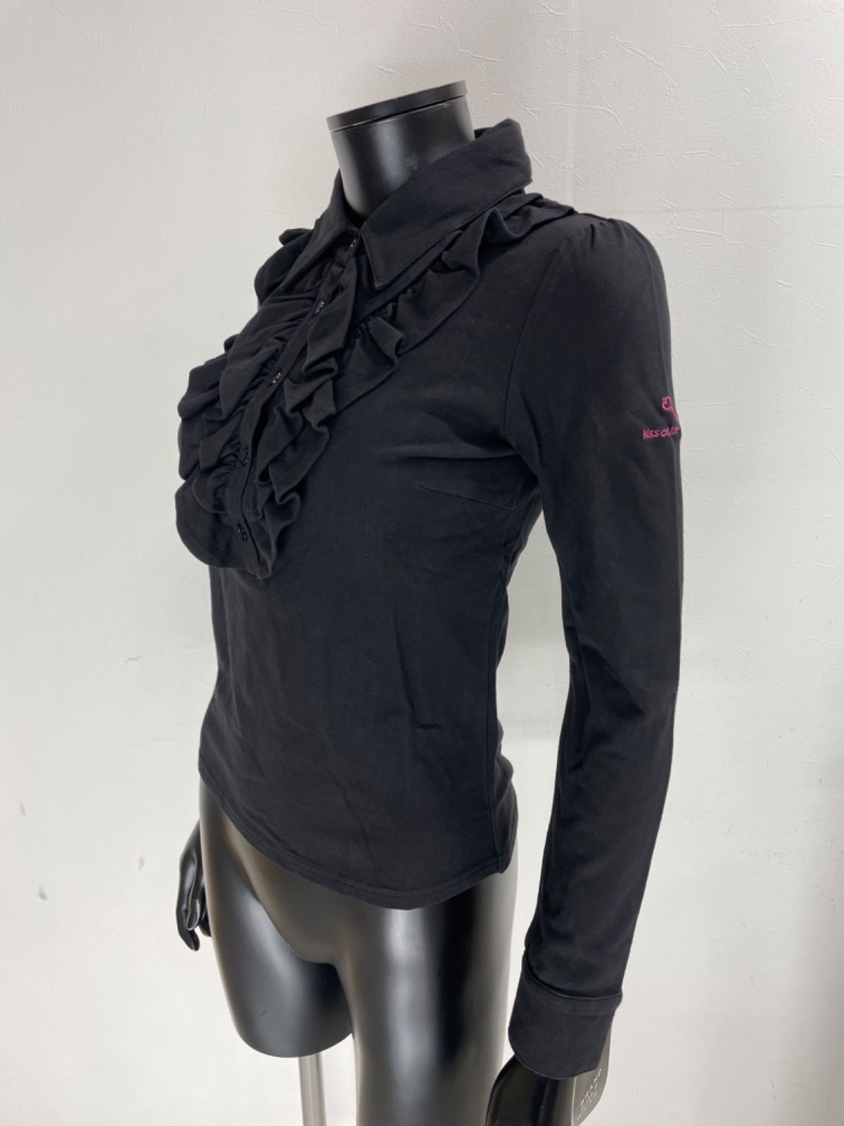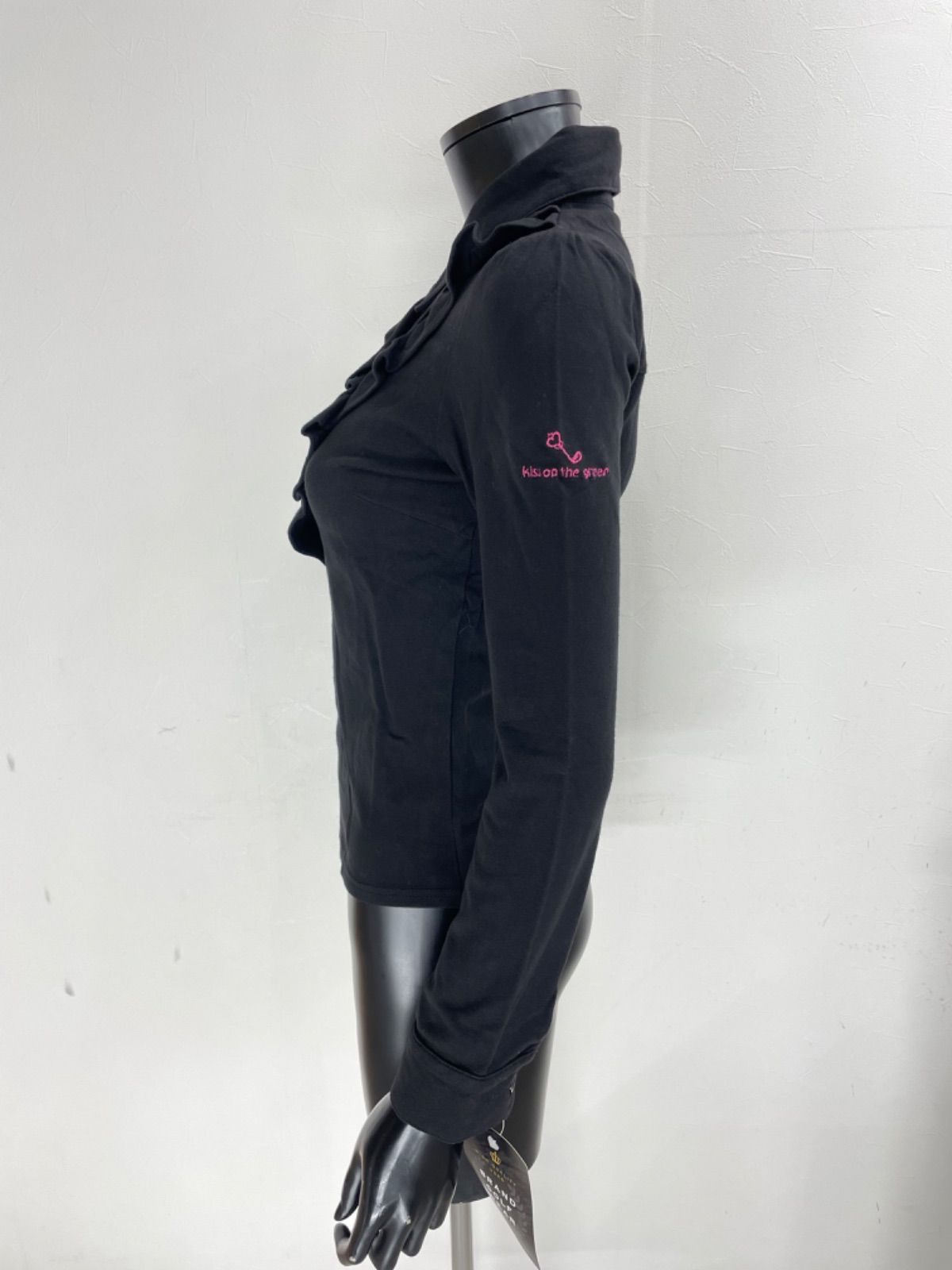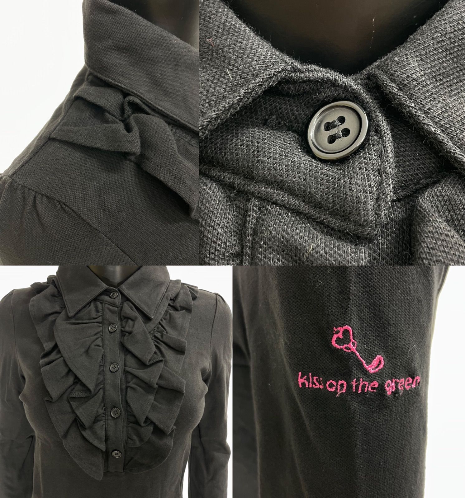 【USED】KISS ON THE GREEN キスオンザグリーン 綿 ストレッチ 長袖 ポロシャツ フリル ブラック 黒 レディース サイズ不明 ゴルフウェア