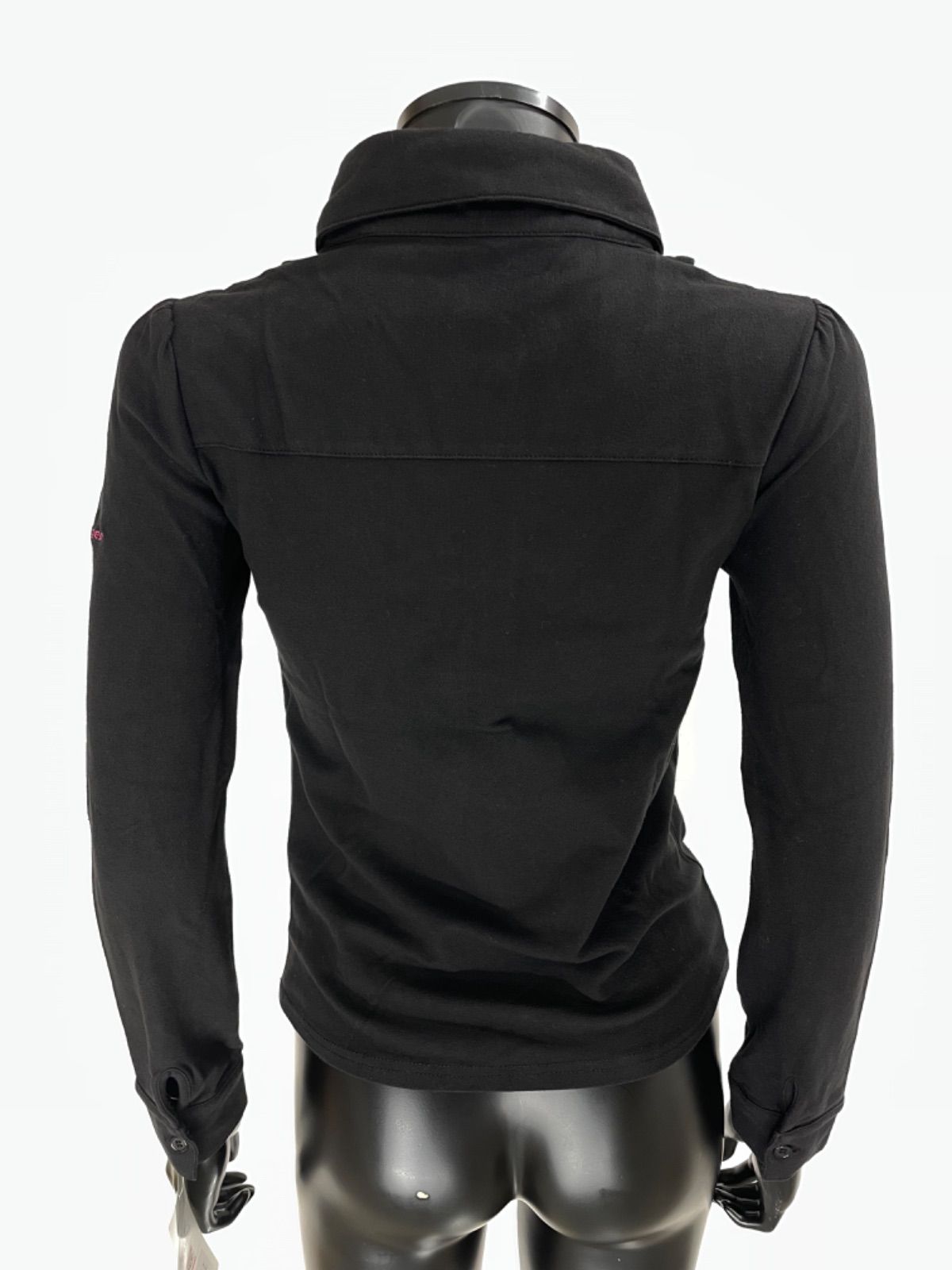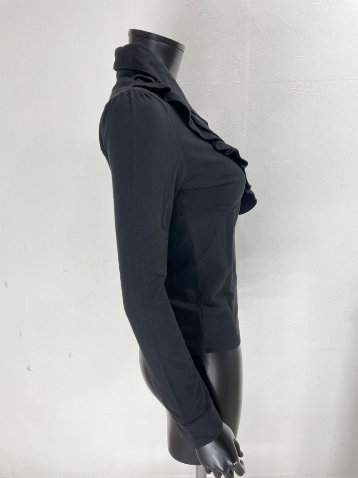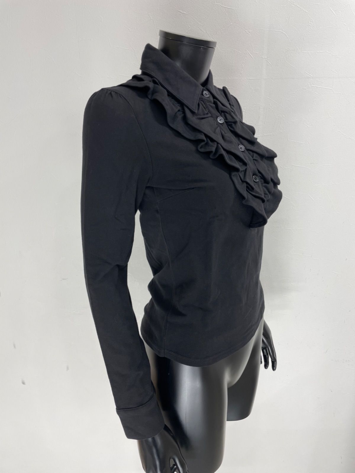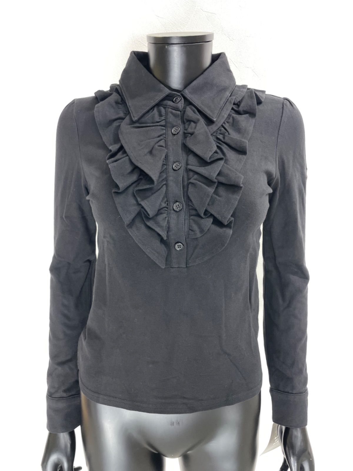 【USED】KISS ON THE GREEN キスオンザグリーン 綿 ストレッチ 長袖 ポロシャツ フリル ブラック 黒 レディース サイズ不明 ゴルフウェア