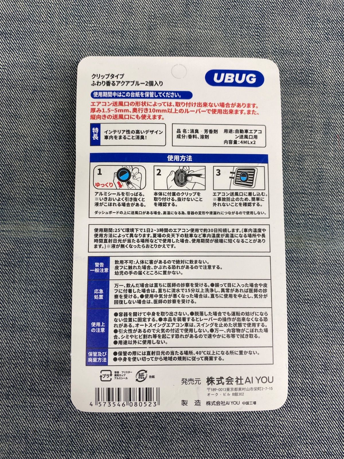 UBUG 車用 消臭芳香剤2個入り 4点セット