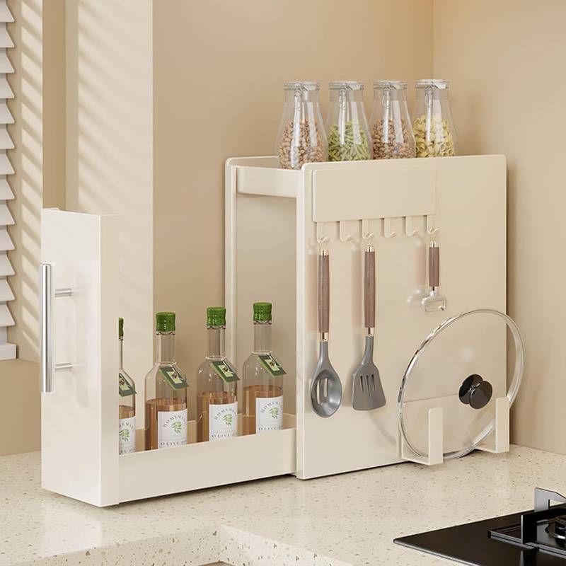 キッチンのごちゃごちゃを一瞬で解決。 コンロ横のデッドスペースにすっきり収まる、隠せるタイプの引き出し式調味料ラック(1段モデル)です。