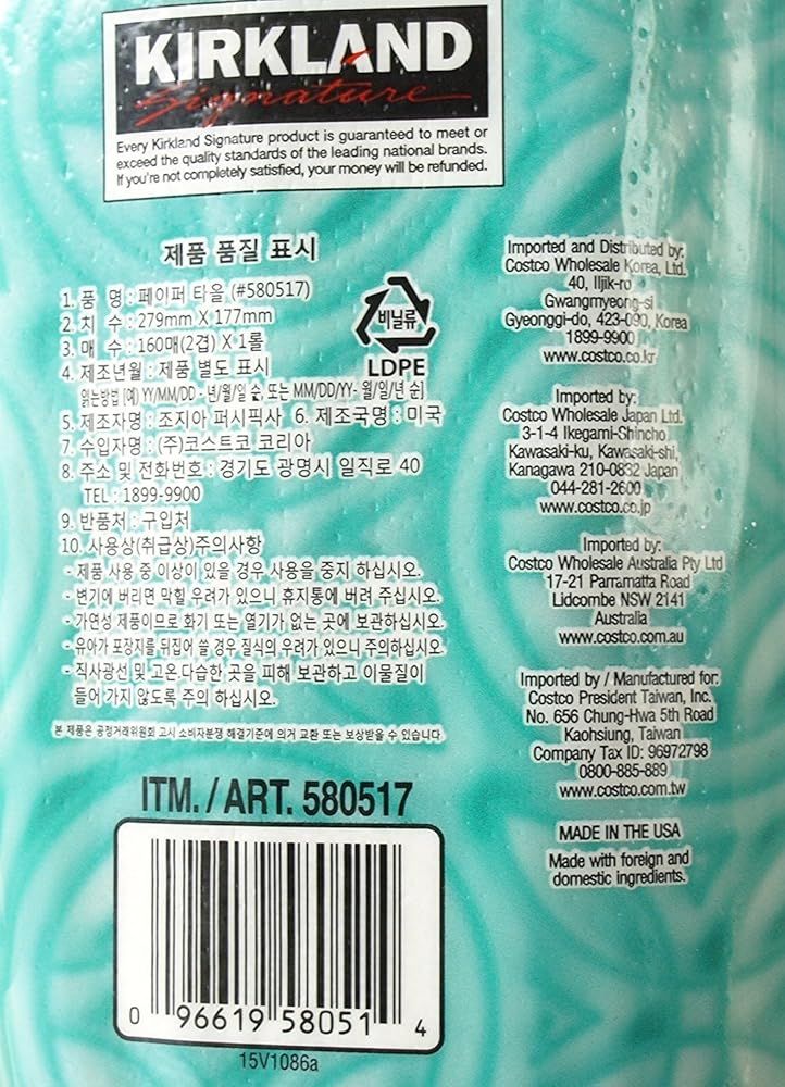 製品名:カークランドシグネチャー ペーパータオル クリエイト ア サイズ 3ロール