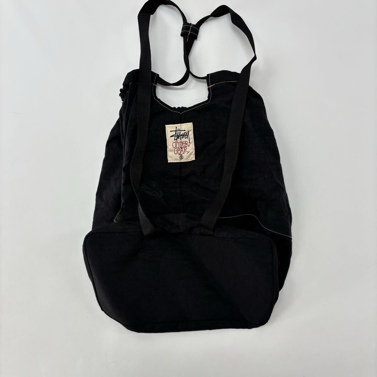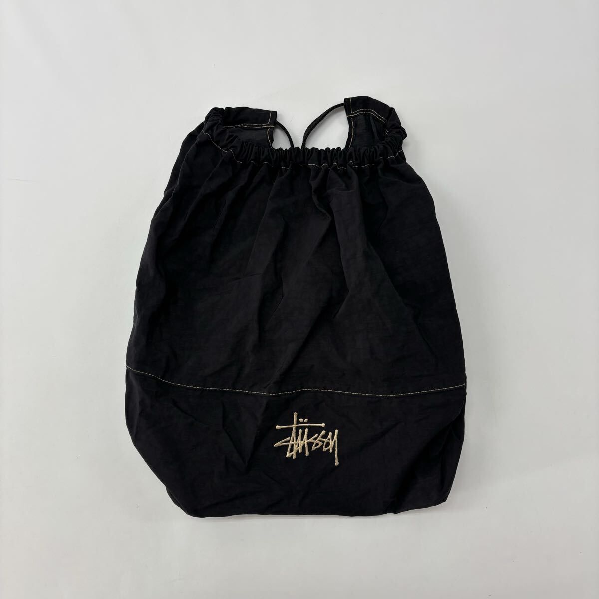 90s 良品 名作 OLD STUSSY オールド ステューシー 白タグ ナップサック ロゴ 刺繍 リュック バッグ BAG ARCHIVE アーカイブ BLACK 712-0120