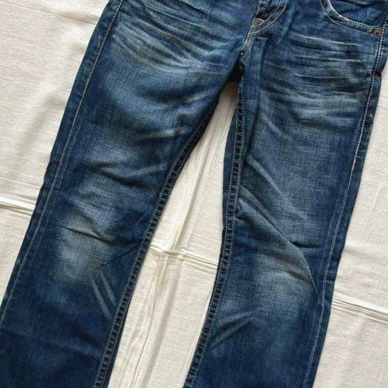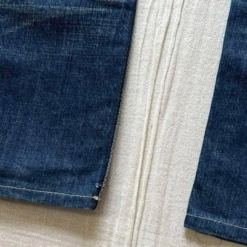 特有のフェード感、鬼ヒゲ感が激シブでビンテージ・グラデーションジーンズのような風合いのインディゴ・濃紺デニムです。