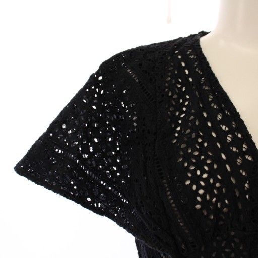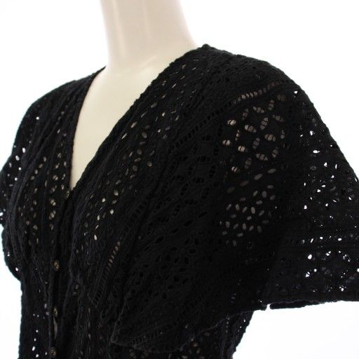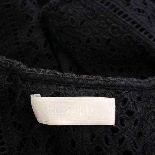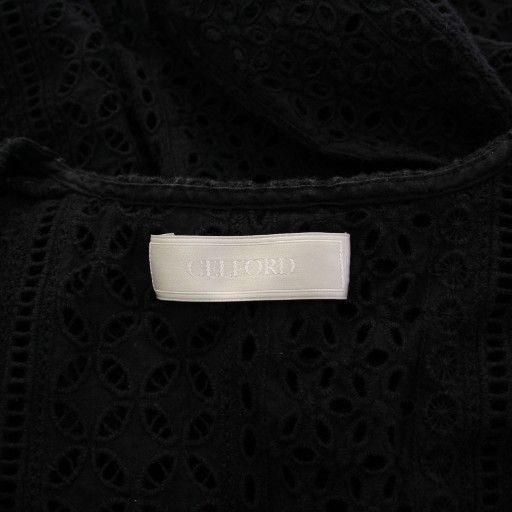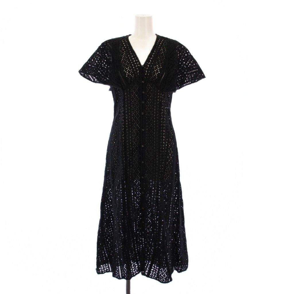 【商品名】セルフォード CELFORD フレアワンピース ミモレ ロング 半袖 Vネック レース 総柄 ワンカラー 38 黒 ブラック /BB