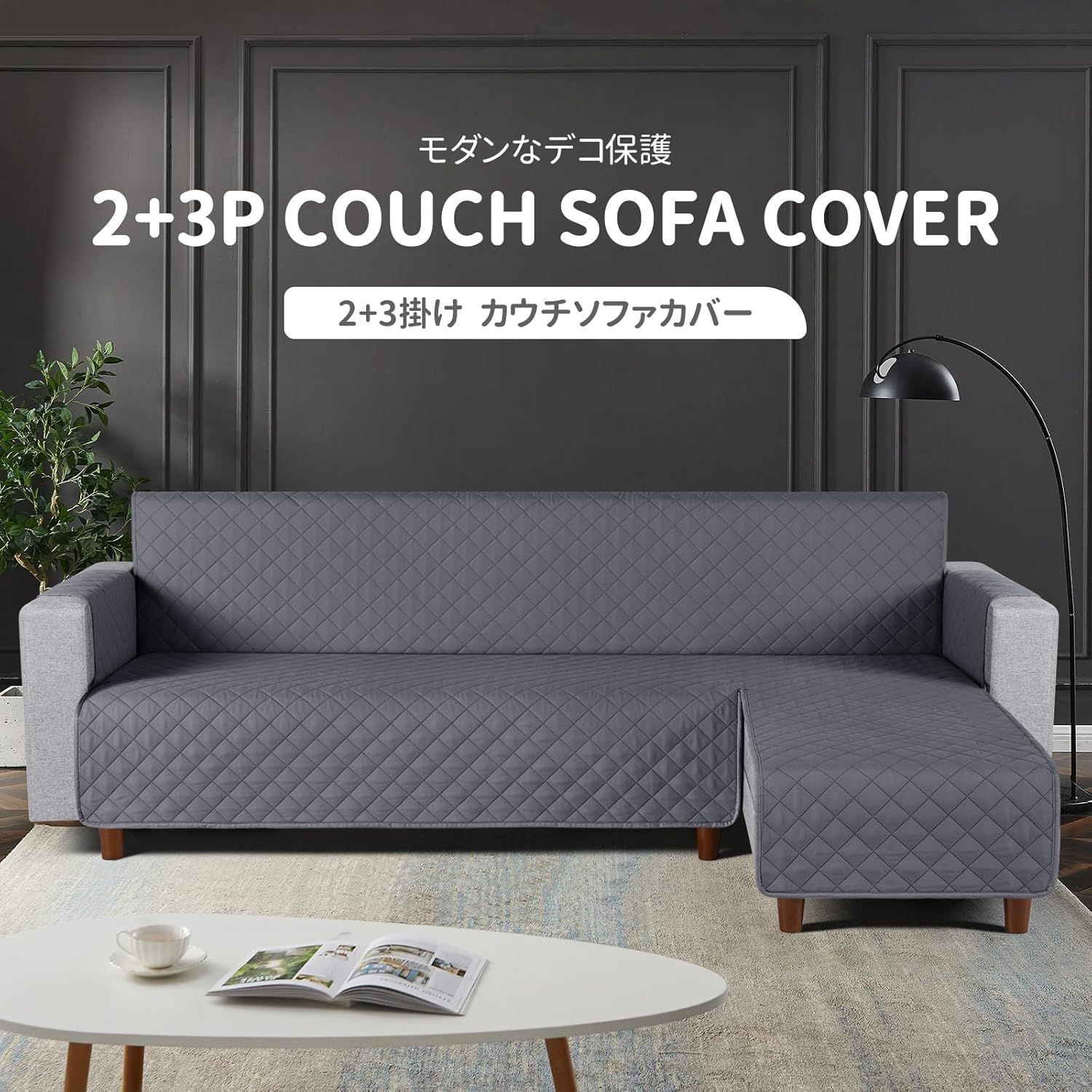 TAOCOCO 防水 カウチソファカバー フロアソファカバー コーナーソファカバー ソファーベッドカバー オットマンカバー コンパクト L字 肘付き 2人3人掛け 犬猫対策 毛髪不粘着 滑り止め 替えソファカバー 防塵 汚れ防止 傷防止 爪とぎ防止 おしゃれ ソファーカバー インテリア マルチカバー 四季適用 撥水加工 丸洗い可能 (ダークグレー色, 2+3人掛け)