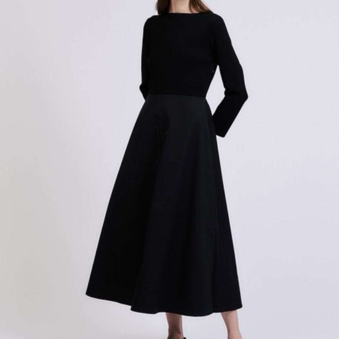 ESTNATION エストネーション コンビニットワンピース ロング丈 クルーネック フレアシルエット 異素材切替 裾両サイドスリット入り イージーケア フェミニン ブラック FREEサイズ レディース 秋 ゴーゴー古着セントラルパーク名古屋店No.1658