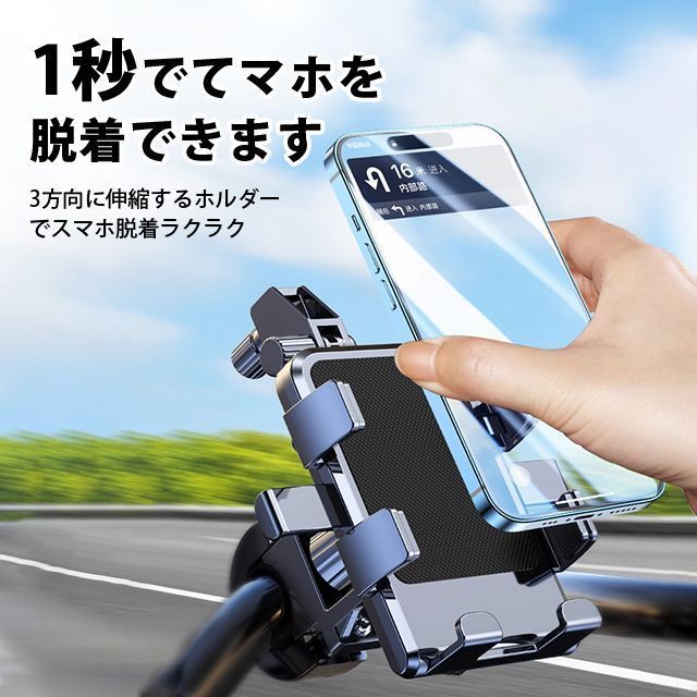 自転車 スマホホルダー両側に革新的なスイッチ設計で伸縮アームを一秒でロックし、片手でも一秒に取り付けて超便利です。
