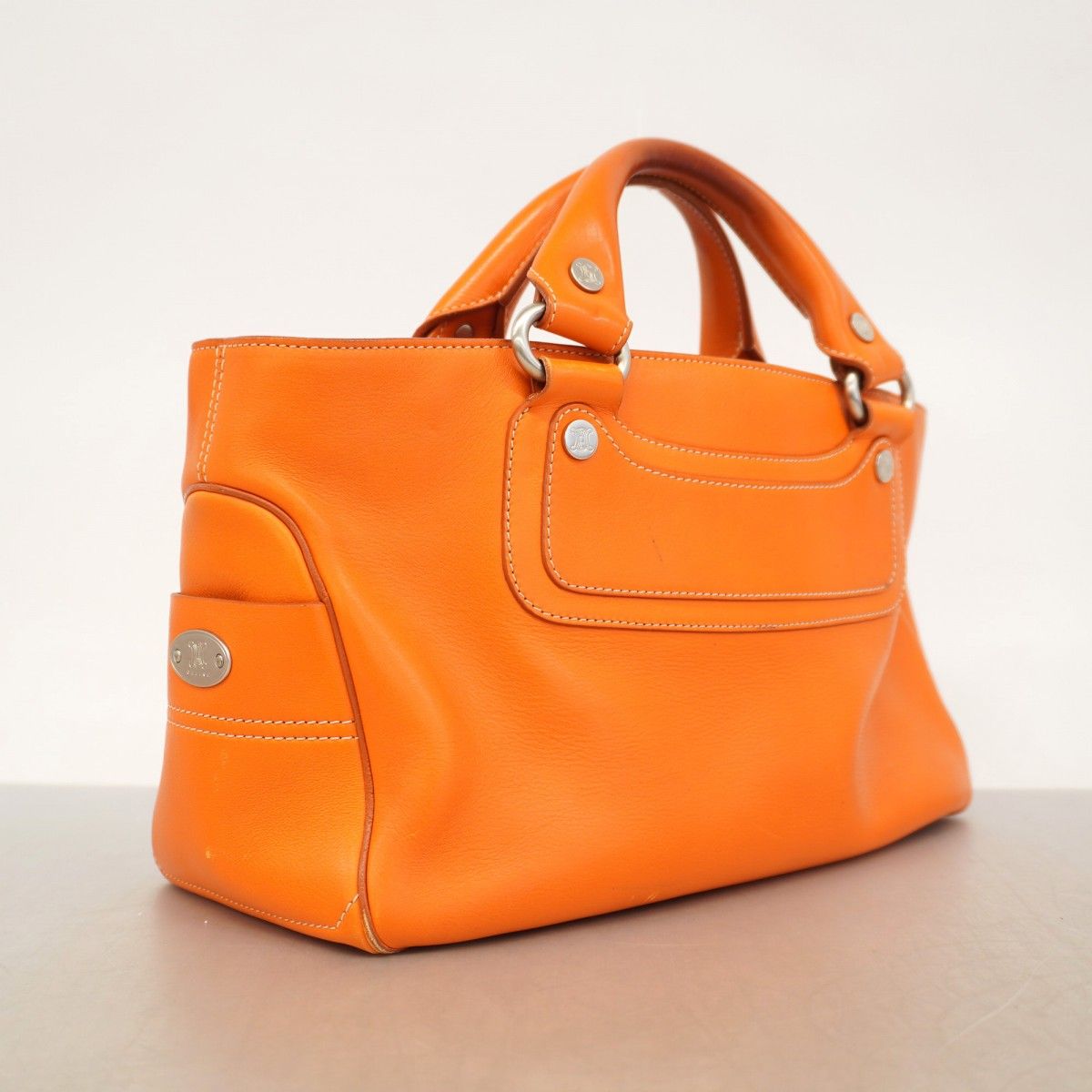 【5pb3043】セリーヌ ハンドバッグ ブギーバッグ レザー オレンジ シルバー金具【中古】レディース