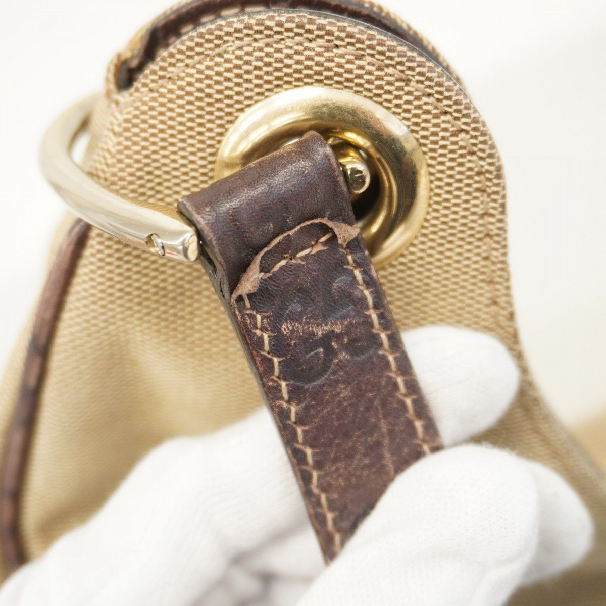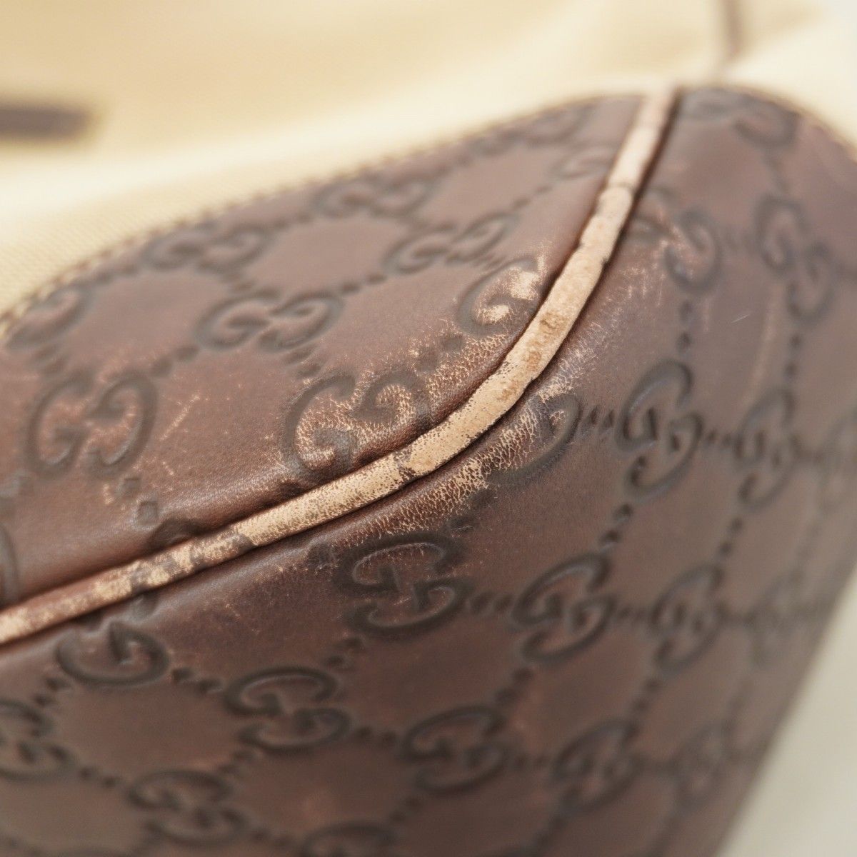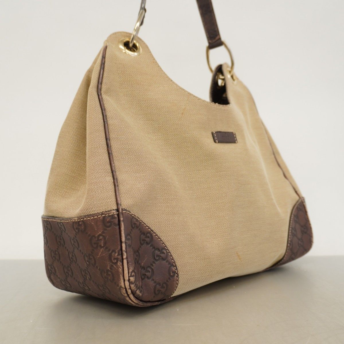 【5pb3038】グッチ ショルダーバッグ グッチシマ 257268 キャンバス レザー ベージュ ブラウン シャンパンゴールド金具【中古】レディース