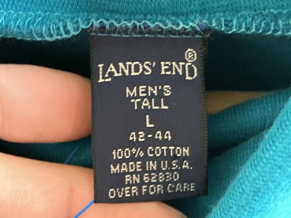 LANDS END ランズエンド メンズ 長袖Tシャツ タートルネック 90s 90年代 アメリカ製 ティファニーブルー サイズL
