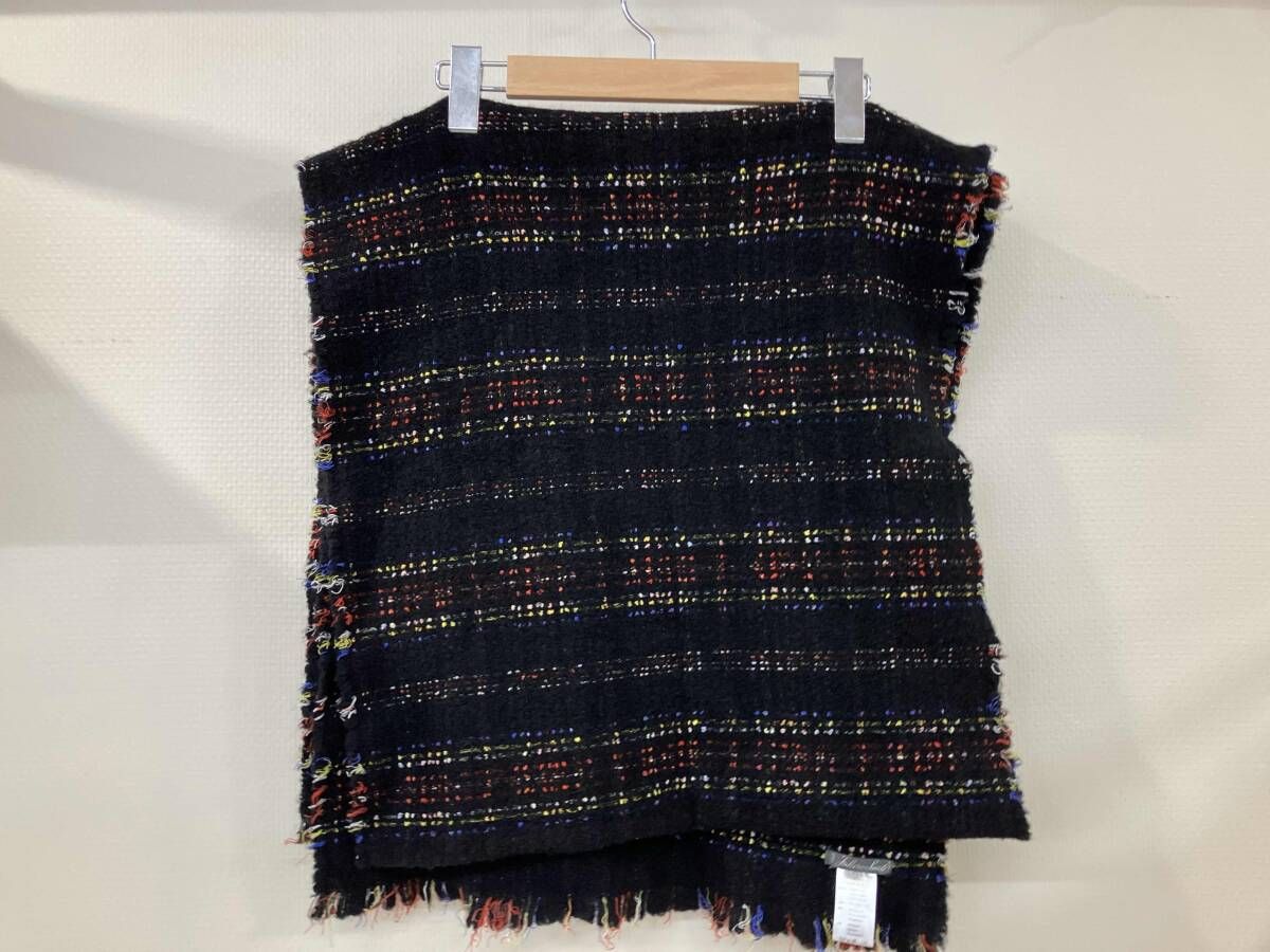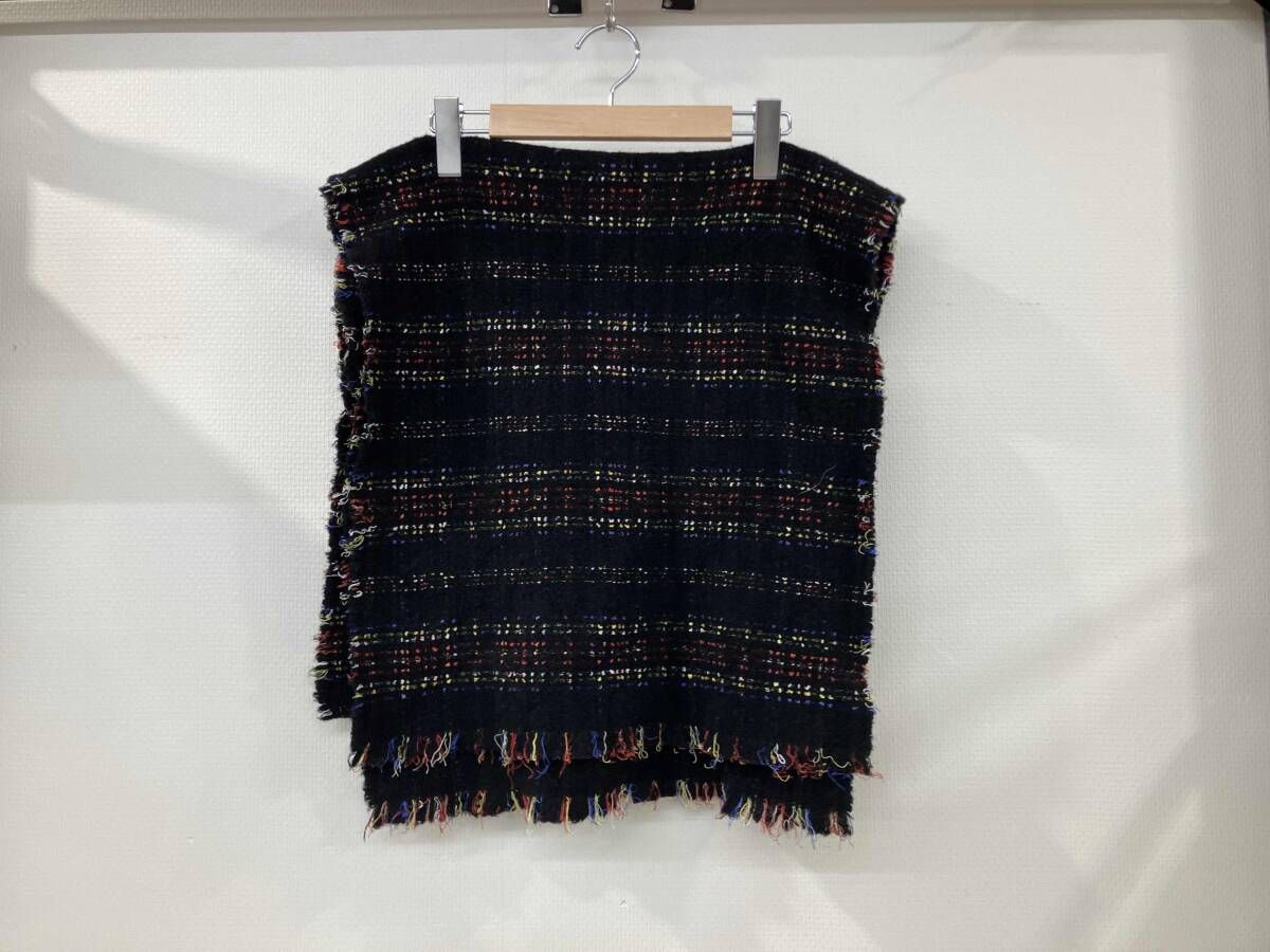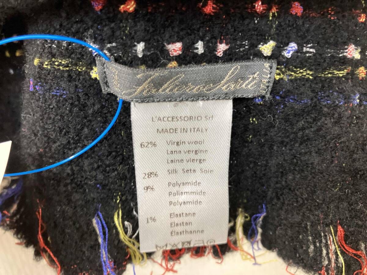 FAlierosarti コットン ウール シルク マルチボーダース BLACK ストール・マフラー ウール約60% Made in ITALY