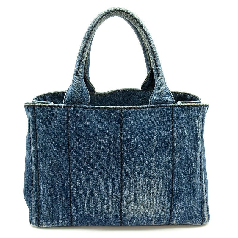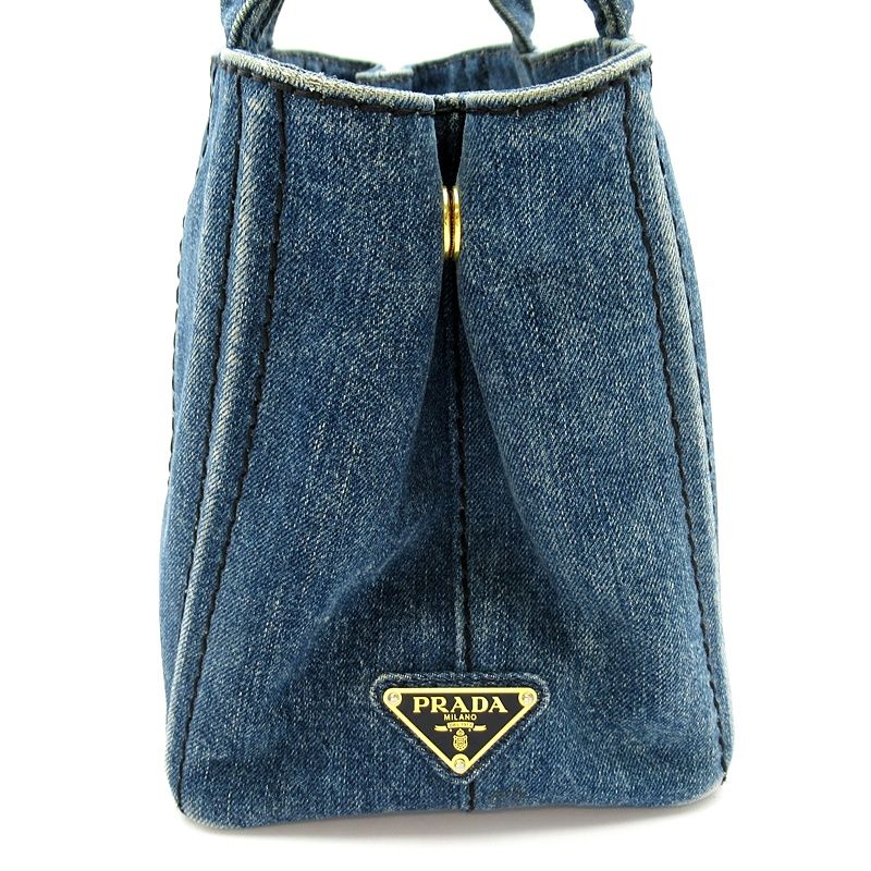 プラダ カナパトートTPM 1BG439 デニム レディース トートバッグ ブルー 美品 【中古】