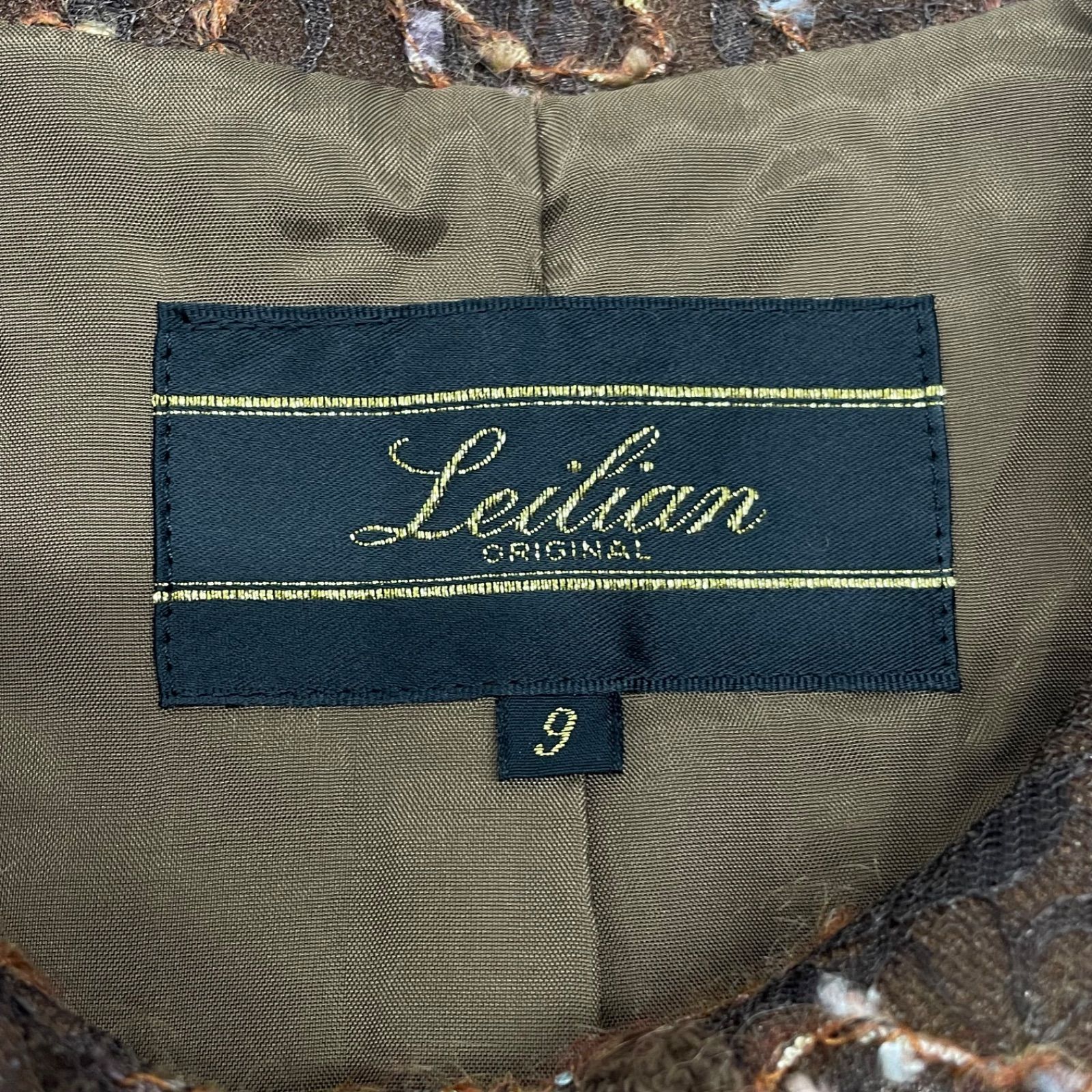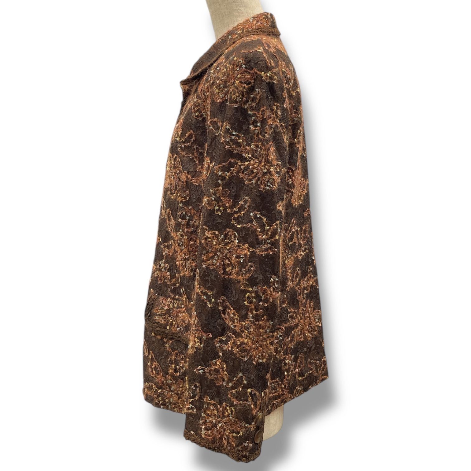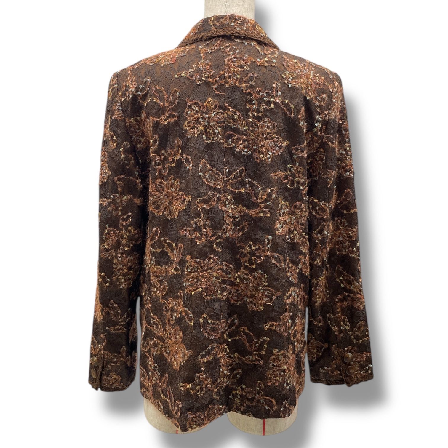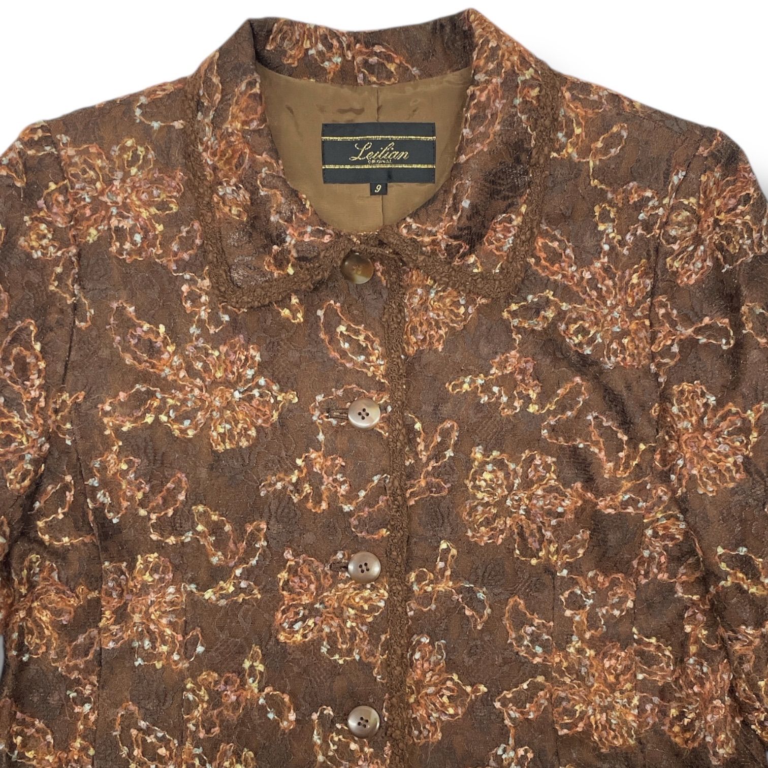 Leilian レリアン シャツジャケット 花柄 フラワー 刺繍 レース 羽織り 肩パッド 長袖 ウール 4018452 茶色 ブラウン 9号 レディース 秋 冬 ゴーゴー古着マルイファミリー溝口店 16 No.355