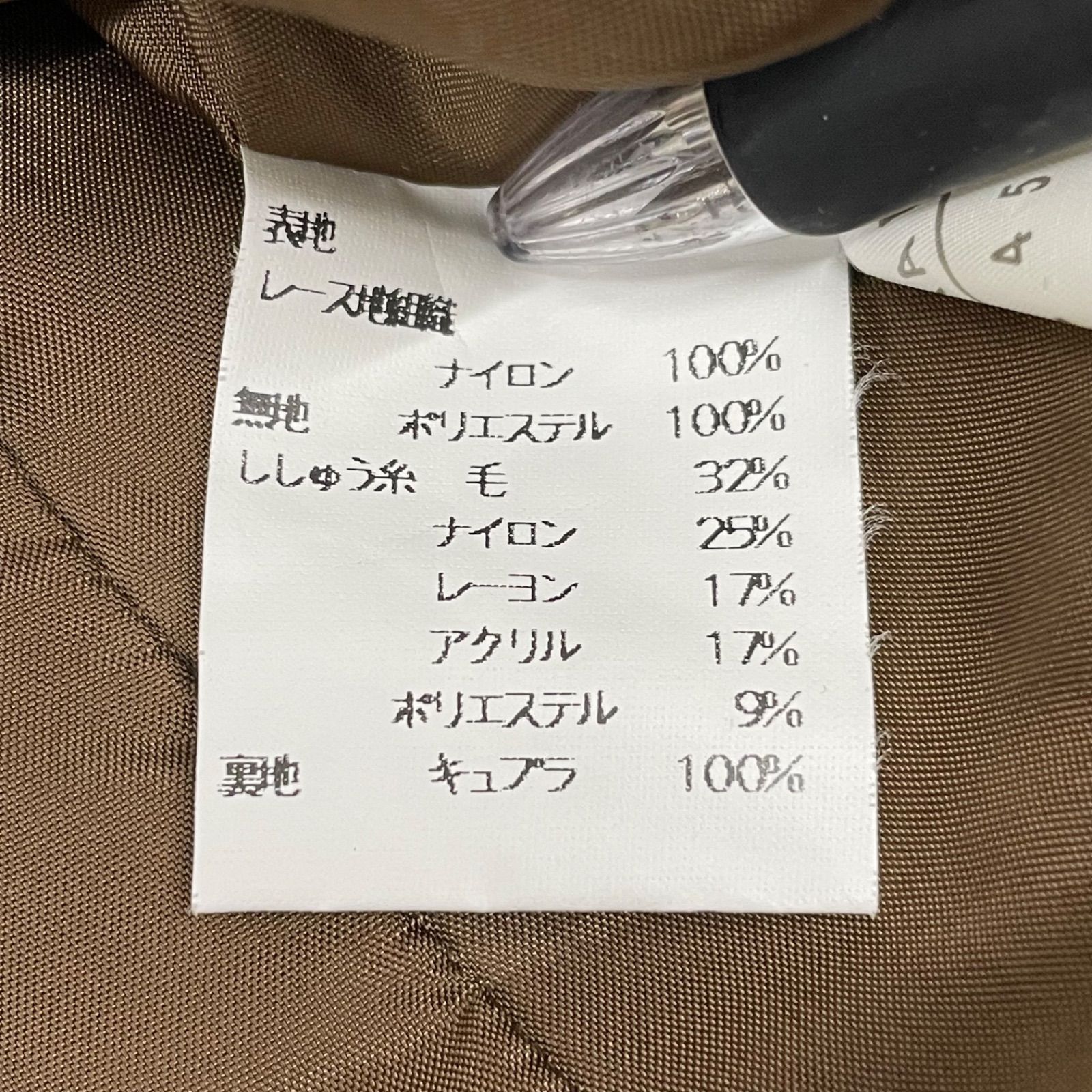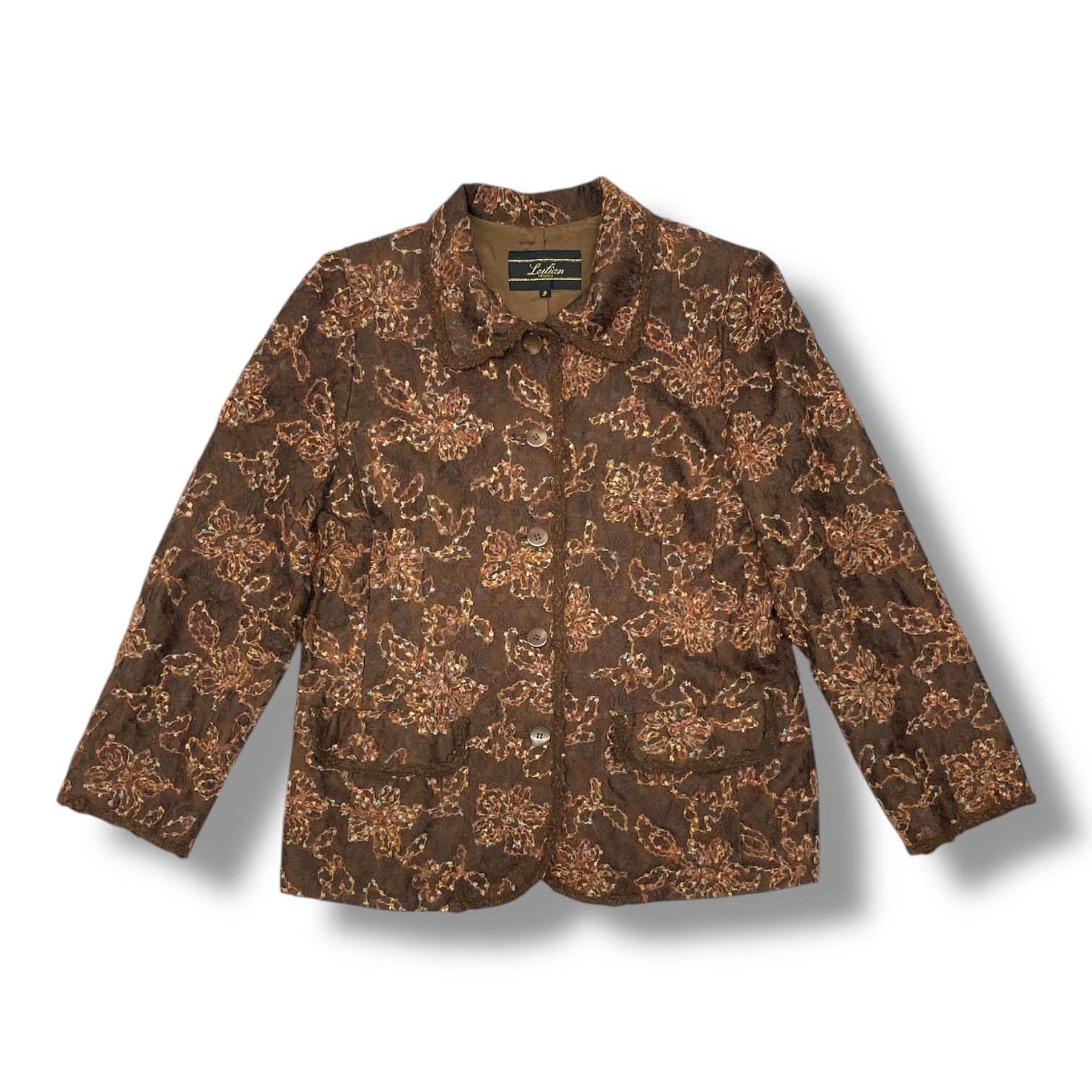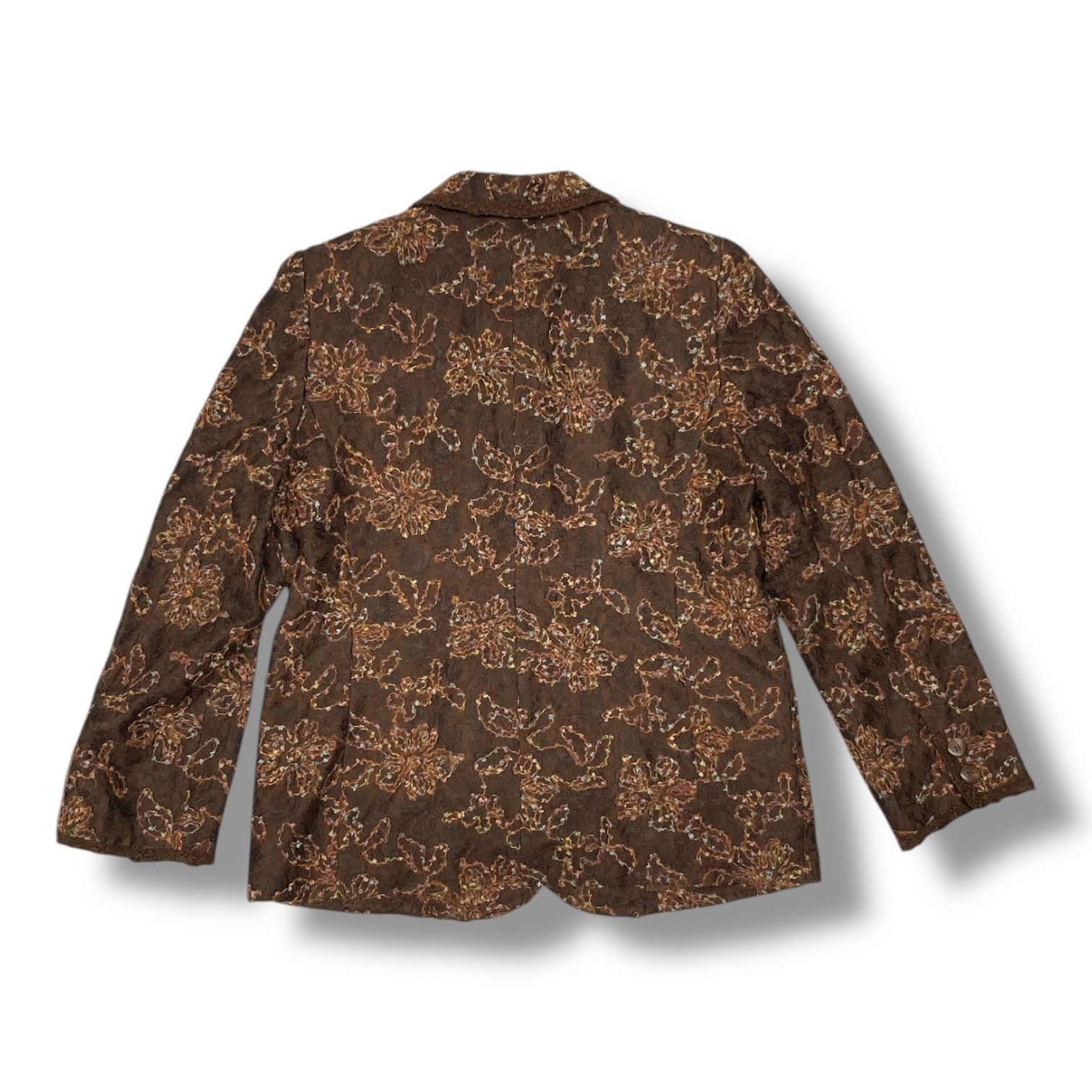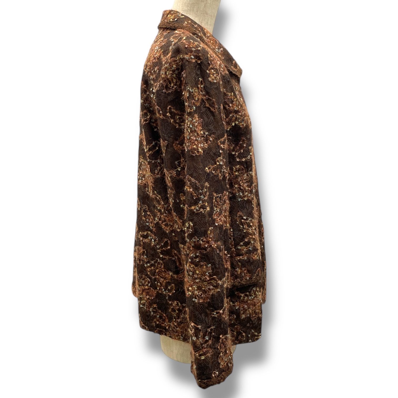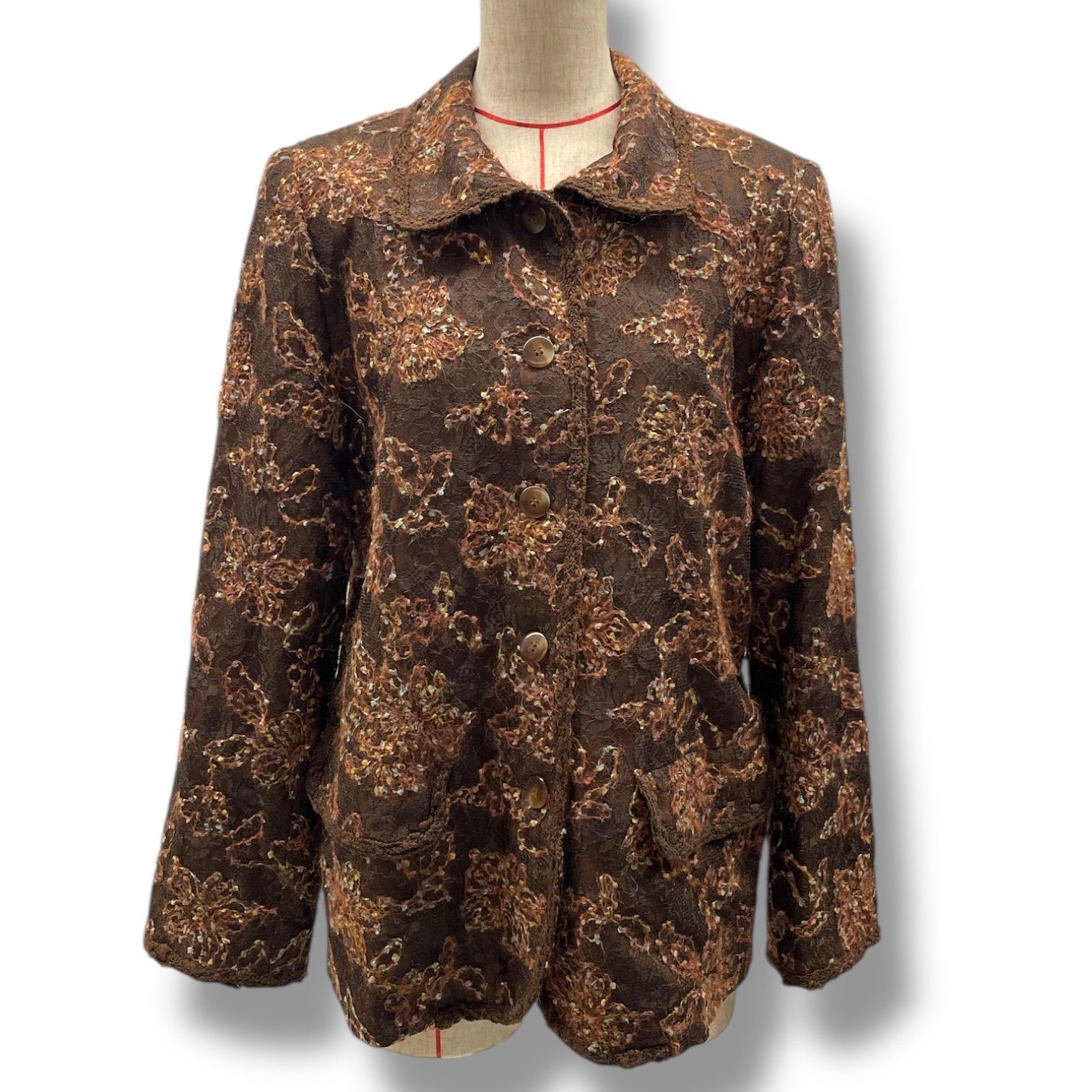 Leilian レリアン シャツジャケット 花柄 フラワー 刺繍 レース 羽織り 肩パッド 長袖 ウール 4018452 茶色 ブラウン 9号 レディース 秋 冬 ゴーゴー古着マルイファミリー溝口店 16 No.355