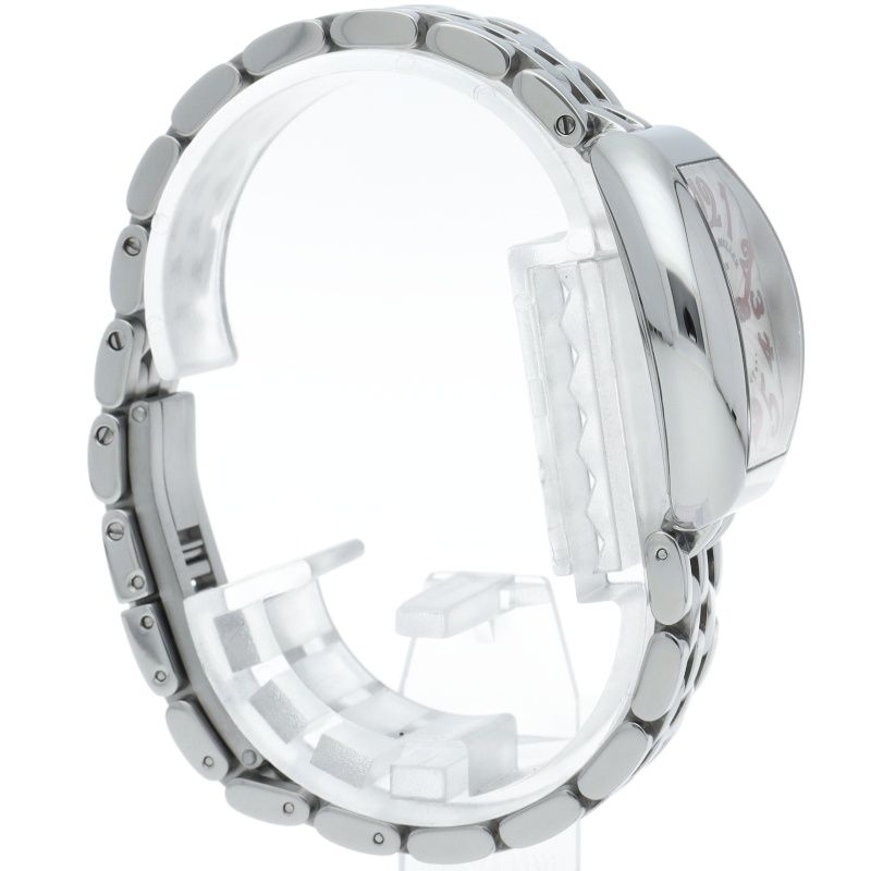 商品説明:ハートをモチーフにデザインされた「ハート トゥー ハート」。“C6H”は6時位置にハートを描いたダイヤルを持つモデルを意味します。ダイヤル6時位置のハートから放射状のギョウシェ彫りが印象的なモデルです。ケースはトノウカーベックスと比べ、丸みを帯びたトノウケースになっておりとても柔らかく可憐な印象になっています。
