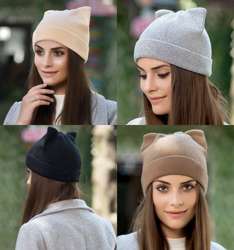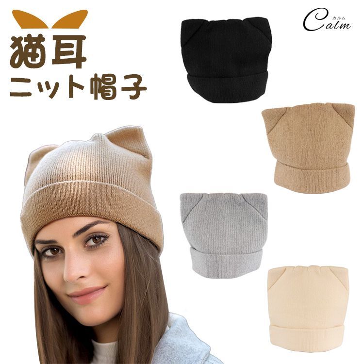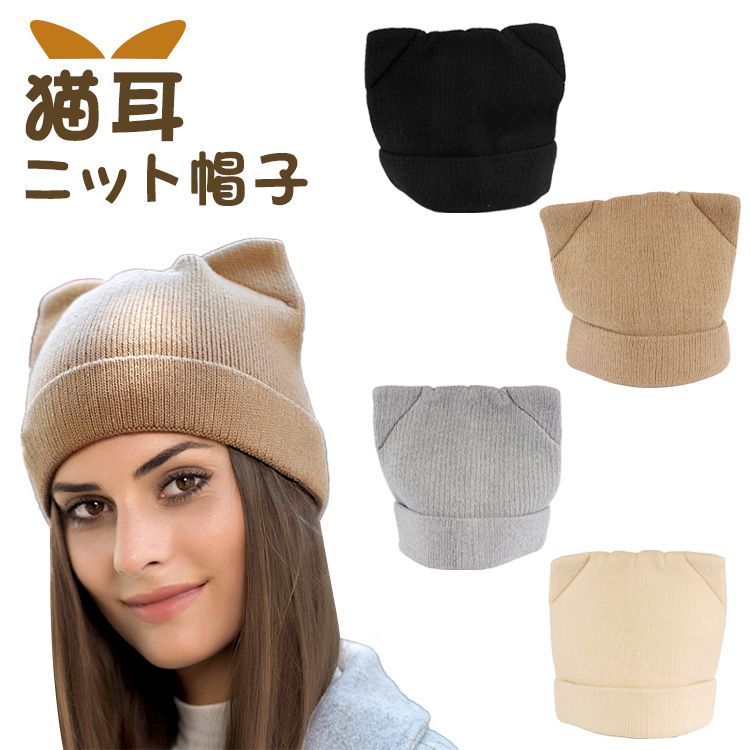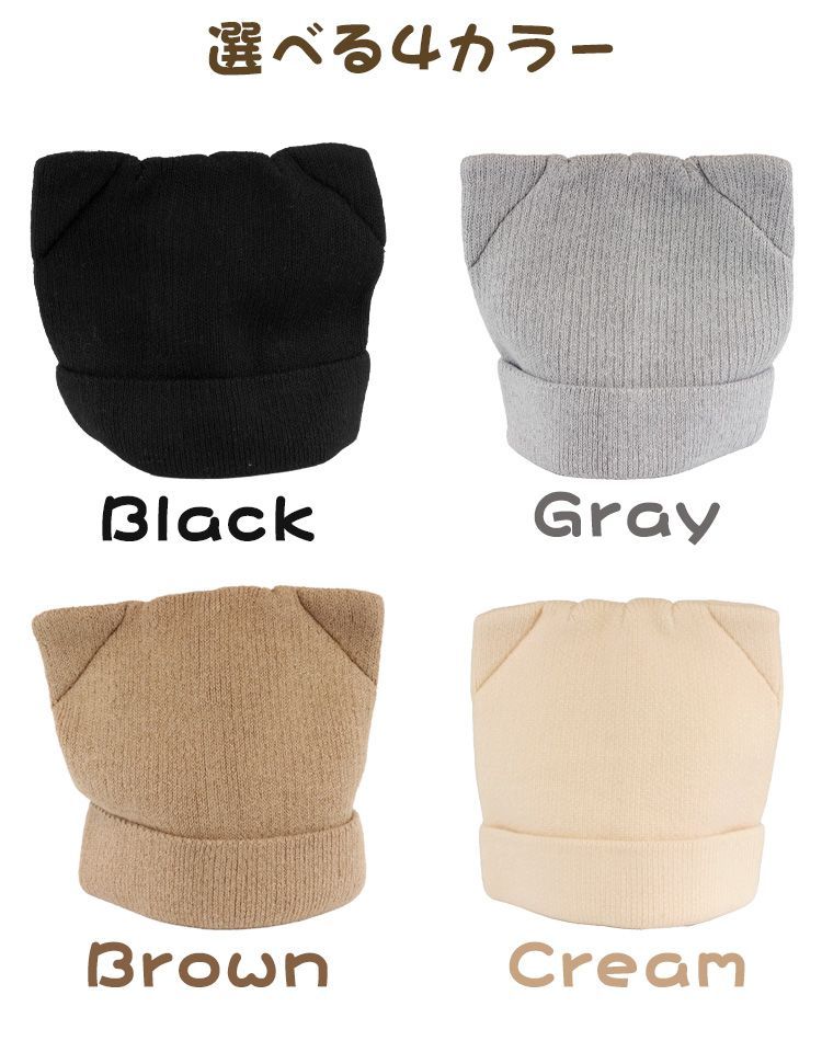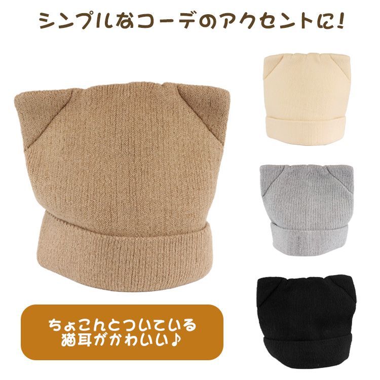 シンプルでありながらもコーデのアクセントになる猫耳ニット帽子。