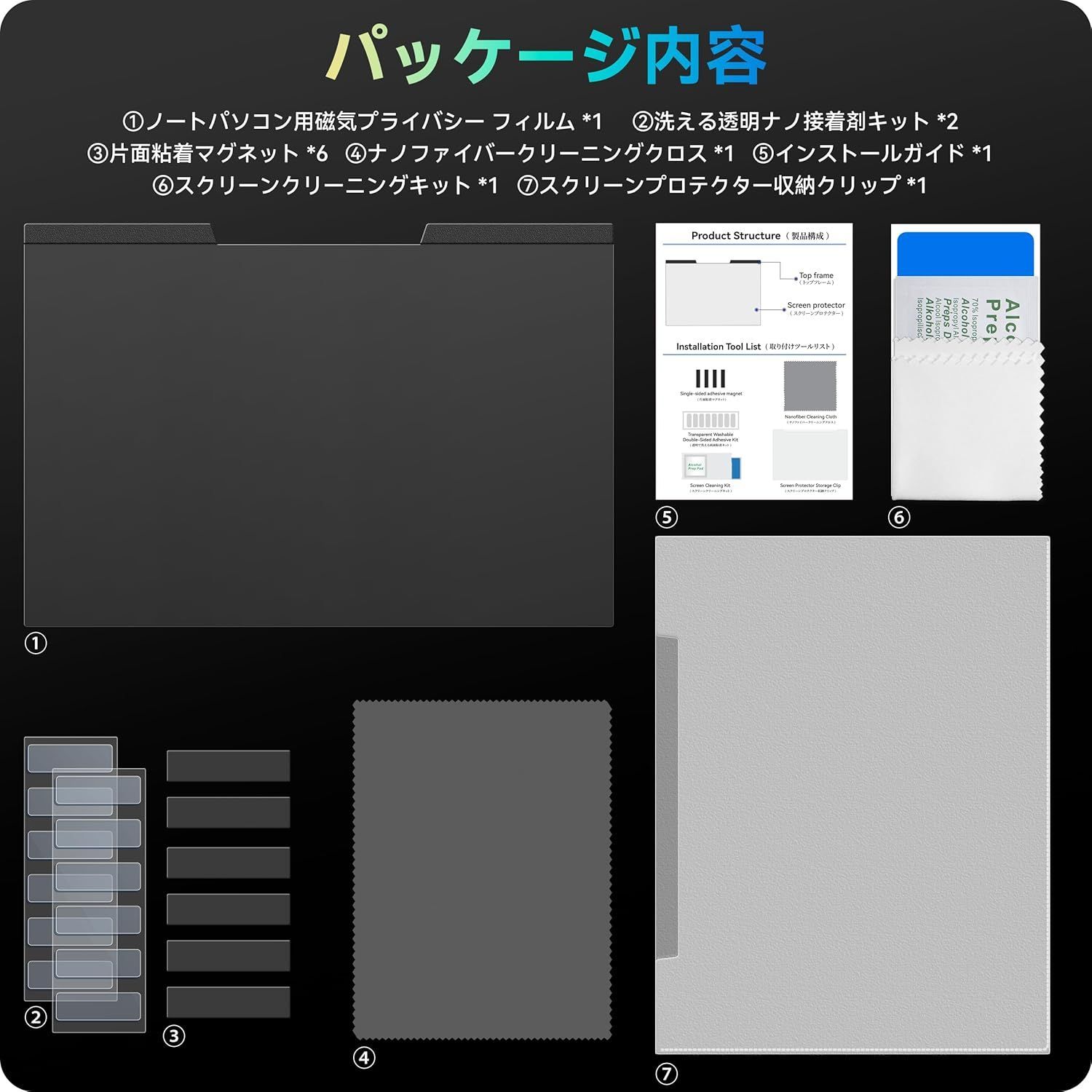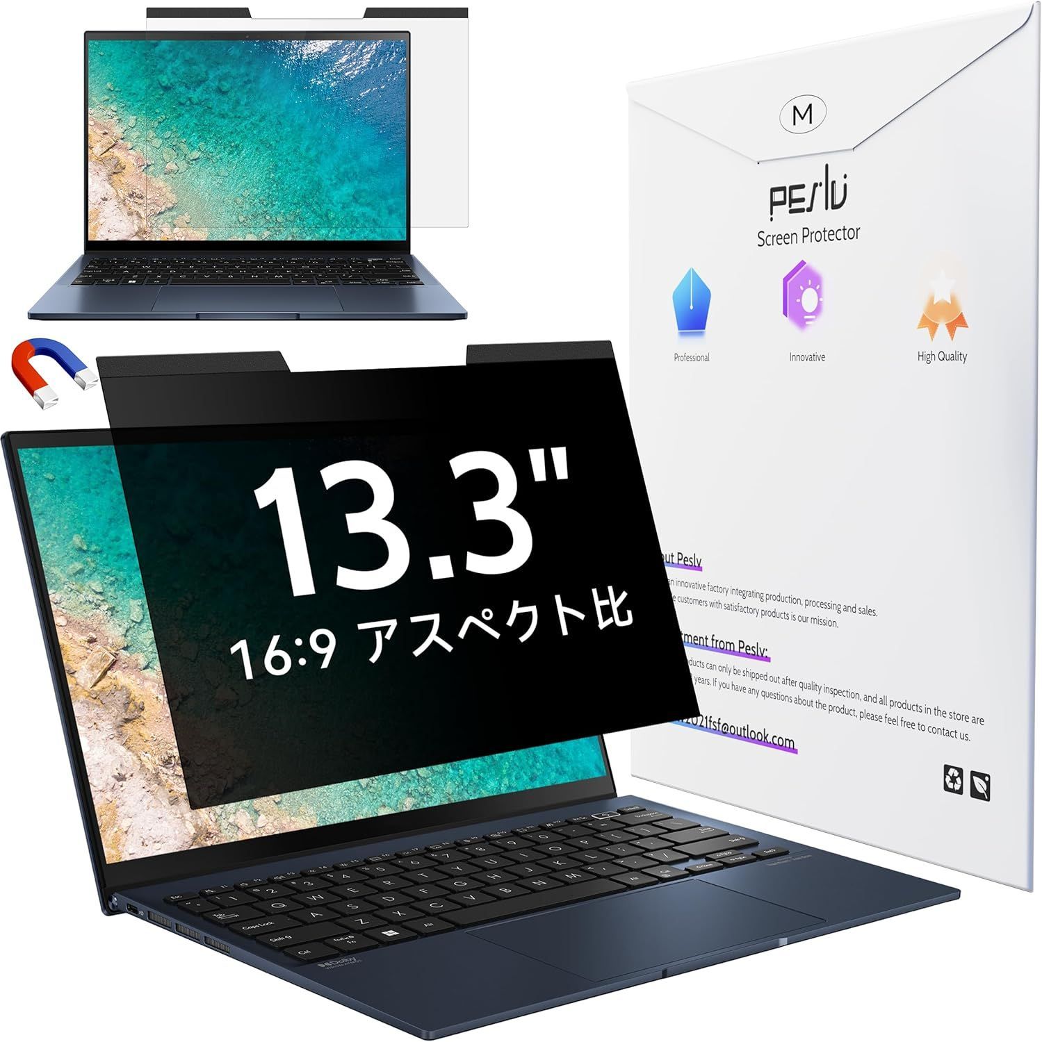 13.3インチ16:9マグネット覗き見防止フィルム、取り外し可能なブルーライトカットアンチグレアスクリーンフィルター、13インチノートパソコン用の磁石ぞき見防止