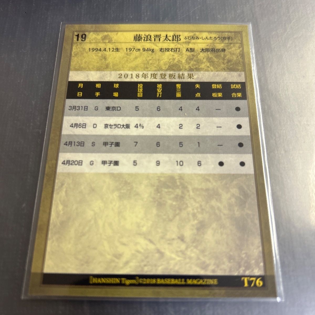 BBM 2018 阪神タイガース Tigers Starters 藤浪晋太郎 T76