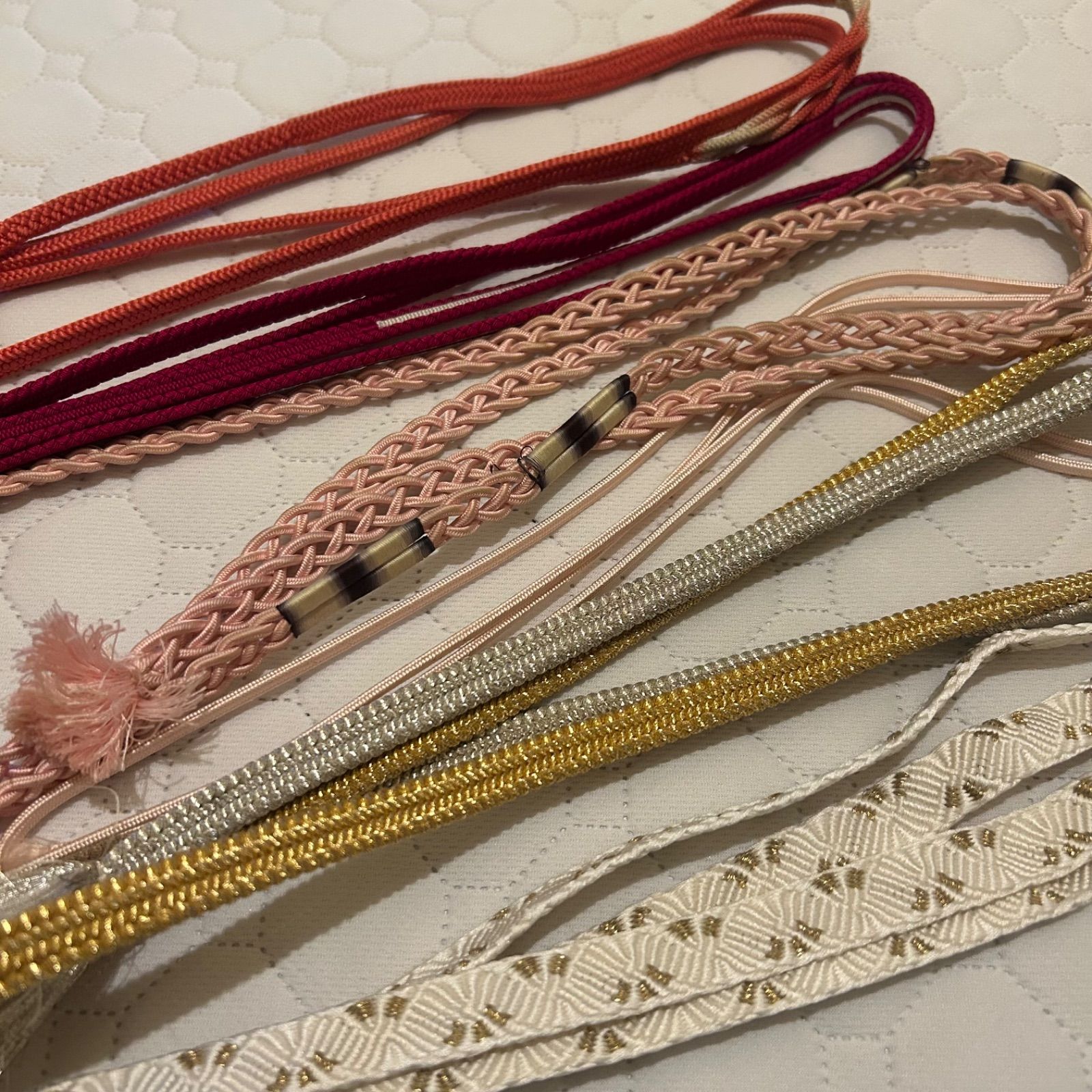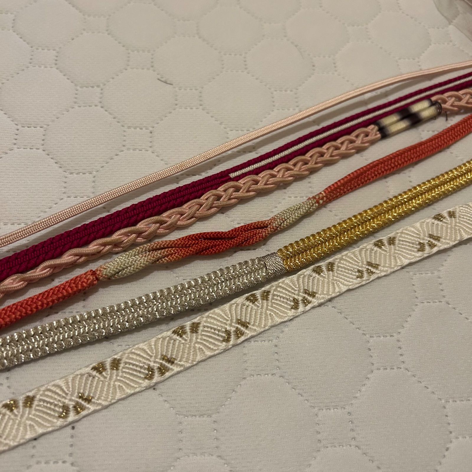 カラフル 赤/ピンク/オレンジ/ゴールド/白 帯締め5本まとめ売り レトロ お洒落帯締め 女性 婦人 レディース 和装小物 和装 着物 小紋訪問着 kimono #きもの猫田 T410