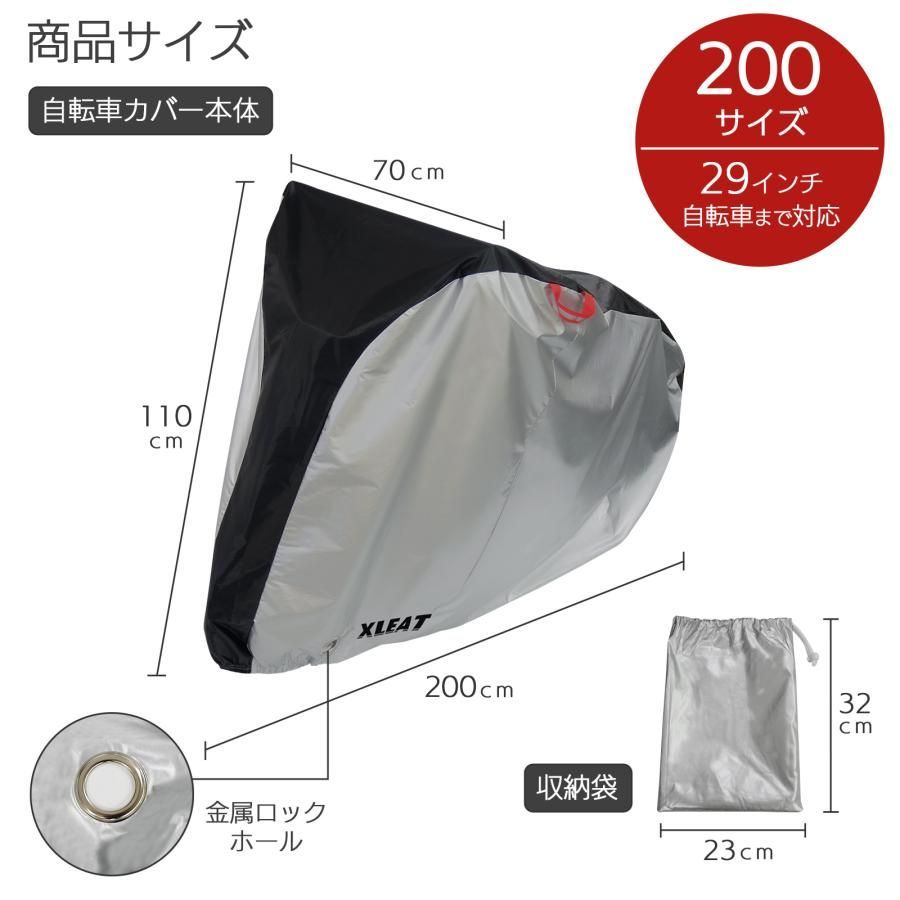 #2756 自転車カバー 200サイズ 29インチ 厚手 防水 撥水 防水カバー レインカバー 自転車 バイクカバー 原付 シルバー UVカット 軽量 丈夫 かぶせるだけ 飛ばない 破れない ※一部地域離島別途配送料有