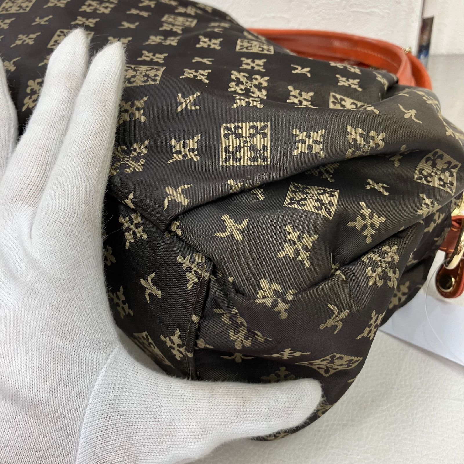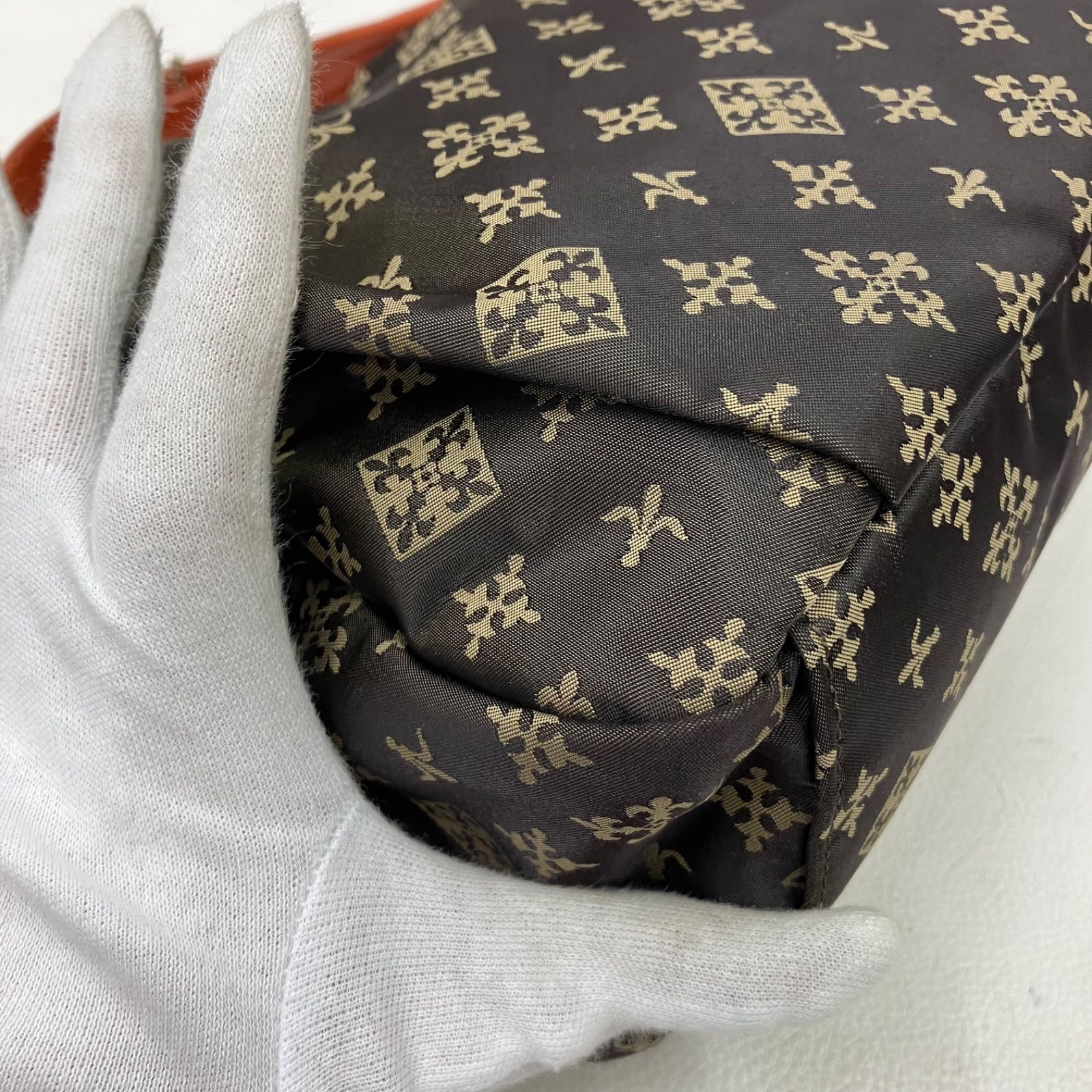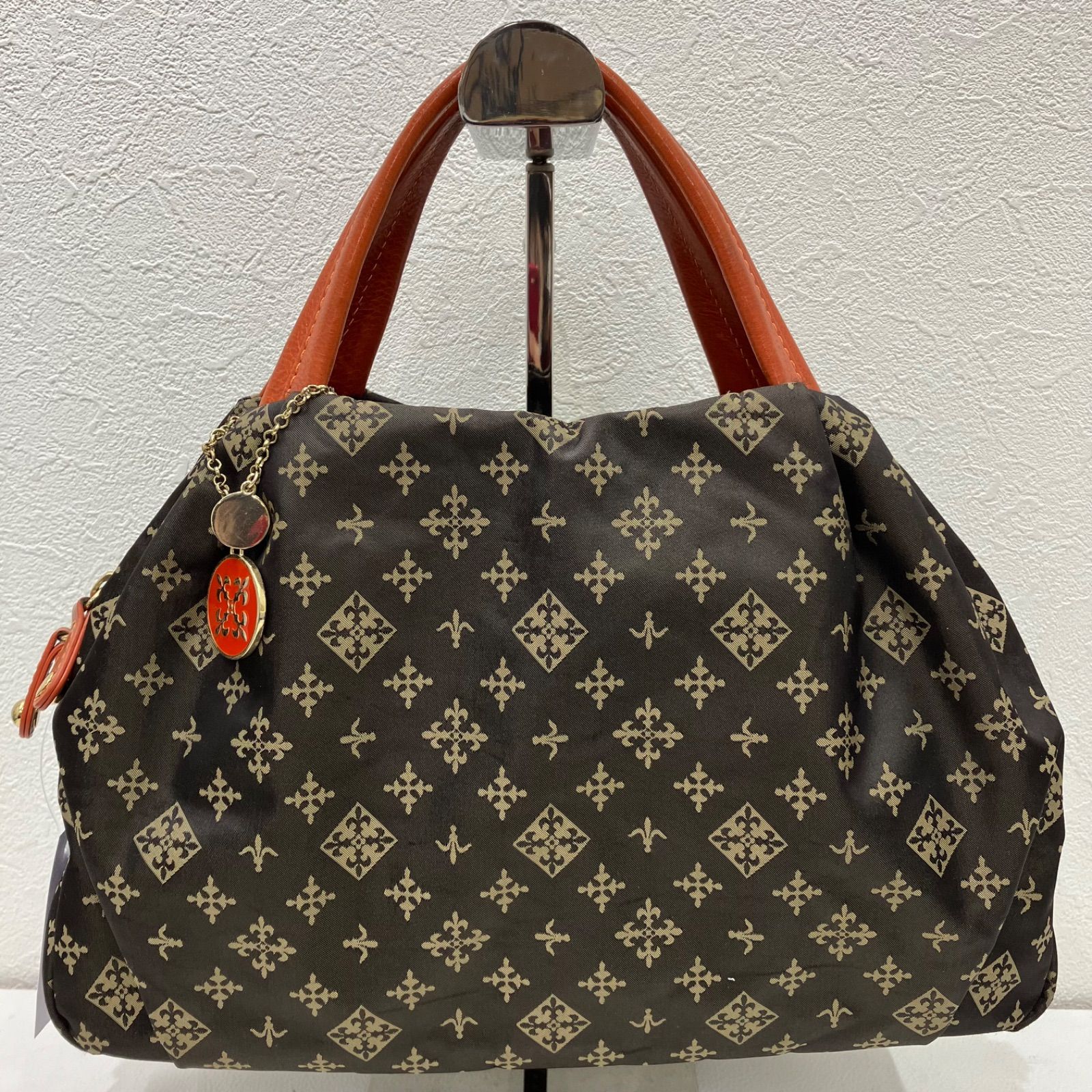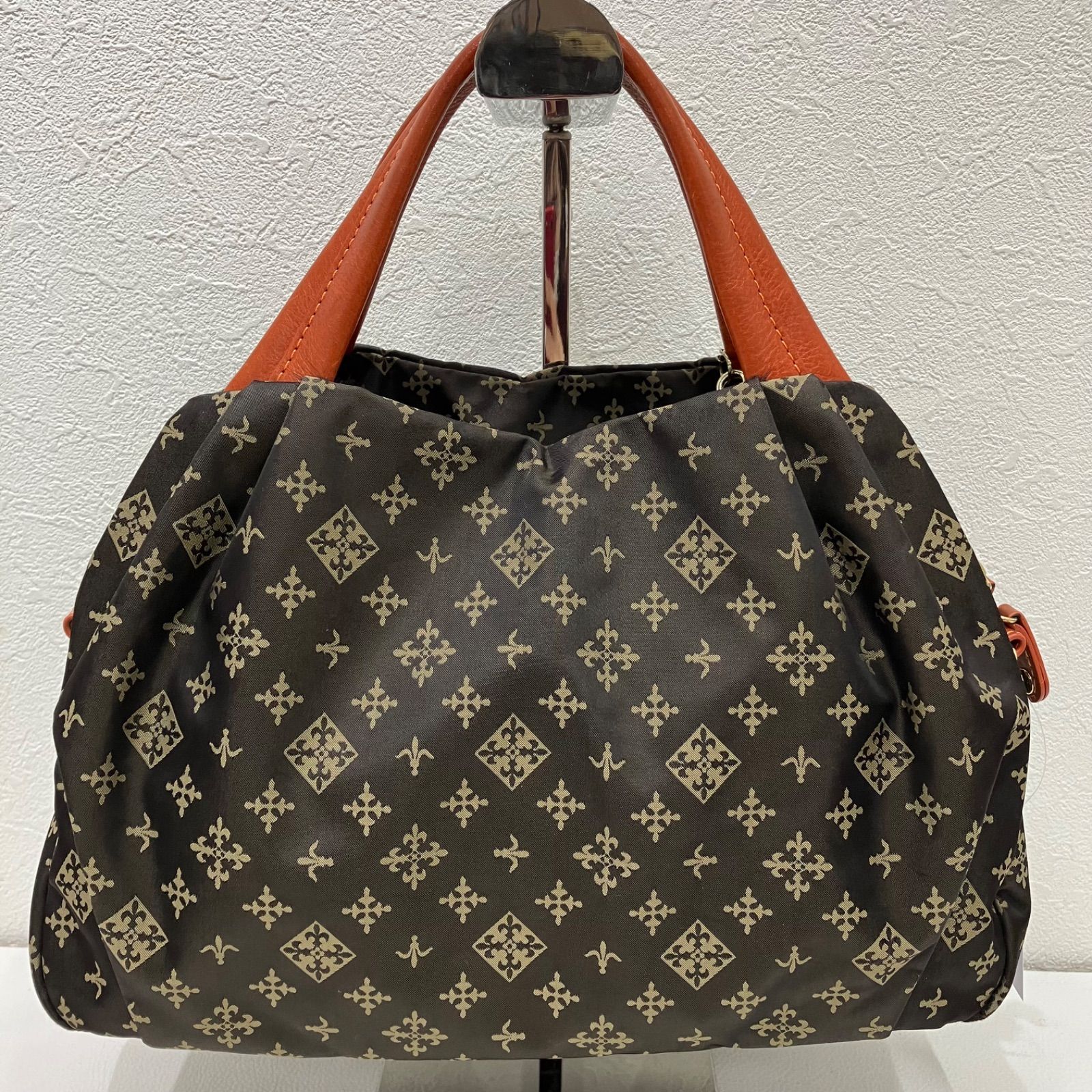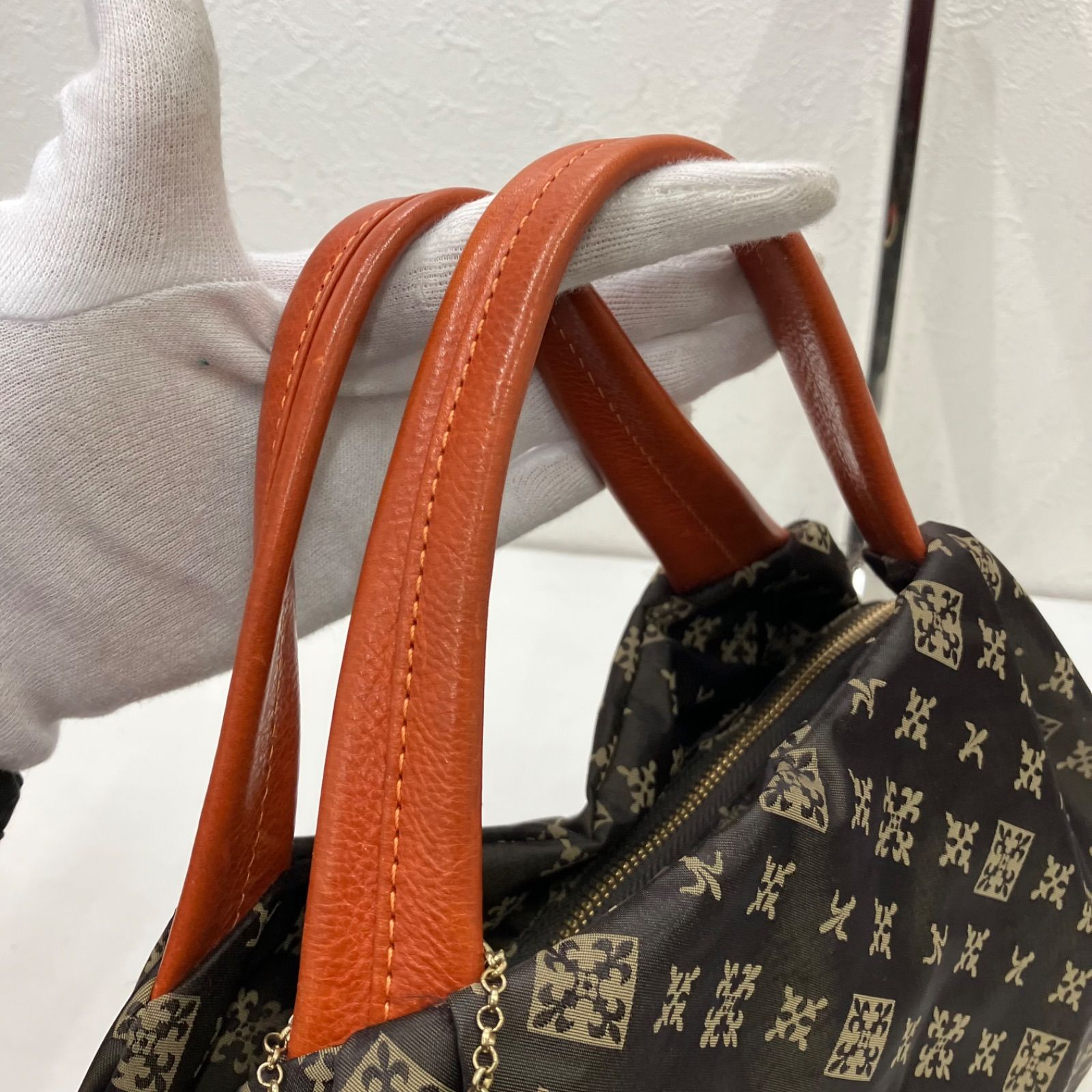 russet ラシット ハンドバッグ トートバッグ 茶 ブラウン オレンジ チャーム付き ナイロン レザー モノグラム 総柄