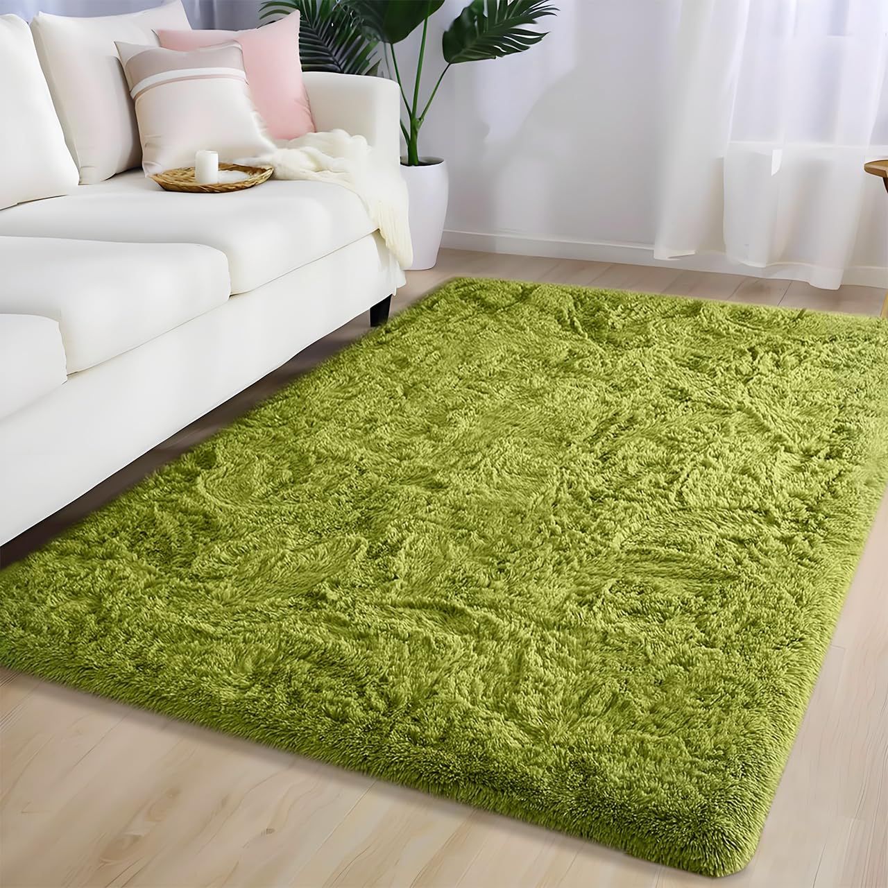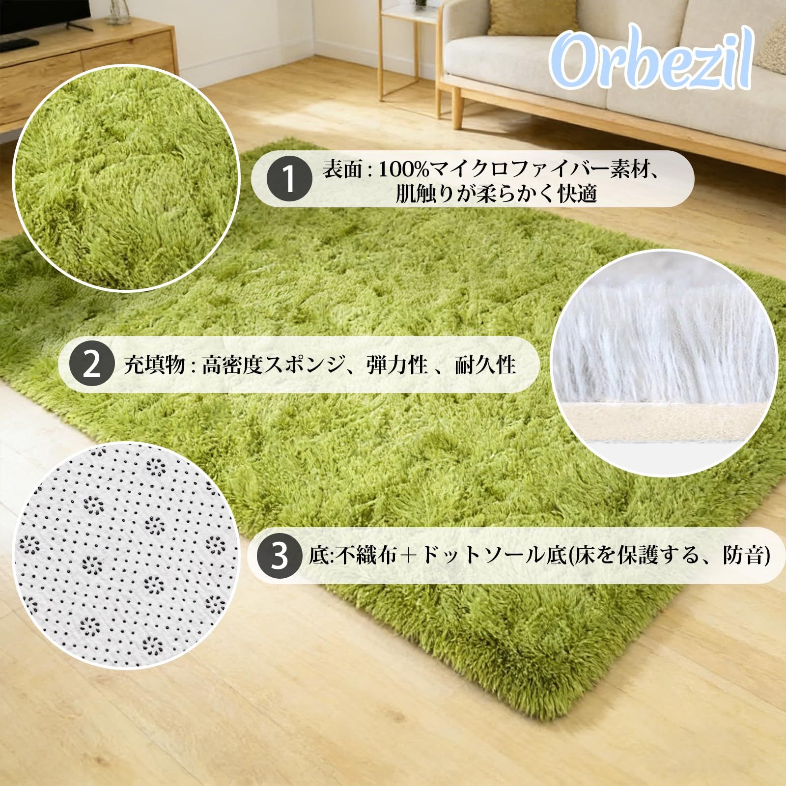 ラグ カーペット 120*180約1.3畳 おしゃれな北欧風 絨毯 じゅうたん メモリーフォーム ふわっとした手触り 防音防ダニ オールシーズン ベッドサイド・寝室用 グラスグリーン