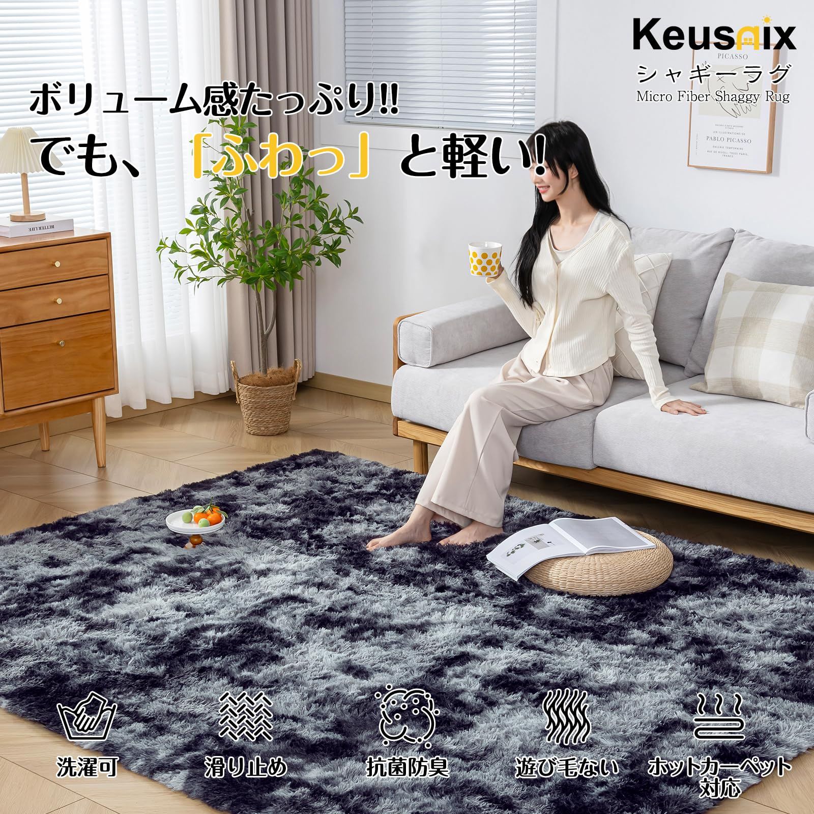 Keusnix ラグ カーペット ラグマット ふわふわ シャギーラグ 120x160cm 絨毯 滑り止め付 洗える 肌触り優しい 防ダニ 抗菌 防臭 オールシーズン快適に使用 床暖房 ホットカーペット対応 ブラックグレー