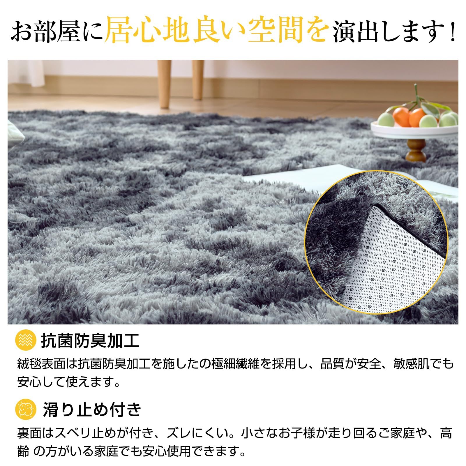 【抗菌防臭・滑り止め】絨毯は抗菌防臭加工を施して、安全な品質で直接肌に触るのも大丈夫です。裏面は不織布に滑り止め加工を施しているのでズレたりすることもありません。掃除機をかける時も滑らないのでストレスから開放されます。またお子様が居ても安心して使っていただけます。