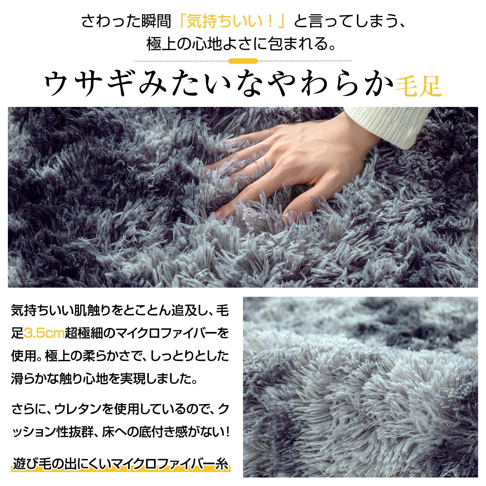 【ふわふわ柔らかな肌触り】カーペット表面の生地は上質なポリエステルを採用し、色褪せず繊細でやわらかな肌触りを実現しました。ふわふわというよりも、しっとりなめらかな触り心地とゴージャスな見た目が魅力。