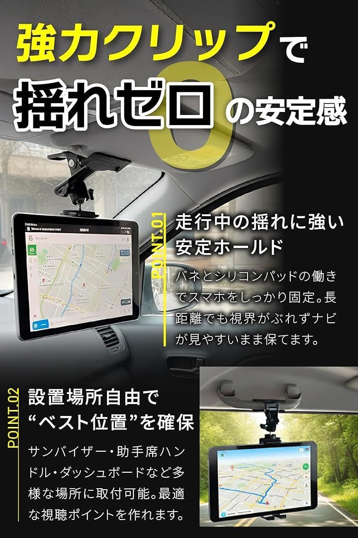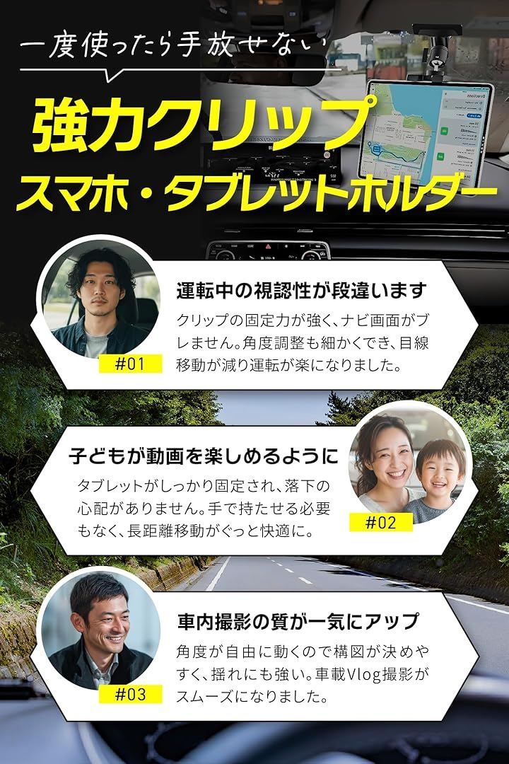 「多デバイス対応ホルダー」 スマホからタブレットまで幅広いサイズに対応。