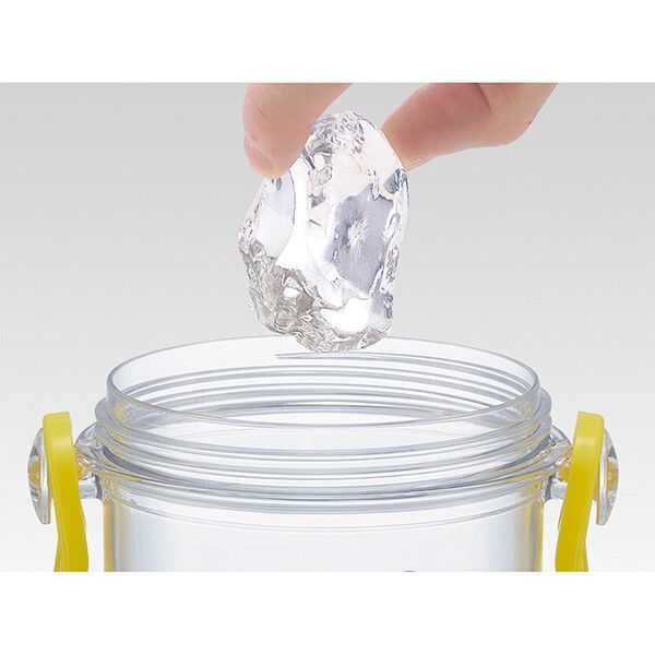 食洗機対応のプラスチック製ボトル(水筒)。本体には割れにくくて透明度の高いPETを使用。キャップを開けるとすぐ飲めるダイレクト飲み口。キャップはワンプッシュ式で簡単にオープン。軽くて持ちやすい形状。氷が入れやすい広口タイプ。肩に掛けて持ち運べるショルダーベルト付き。ショルダーベルトは取り外せ、長さ調節もできる。名前シール付き。