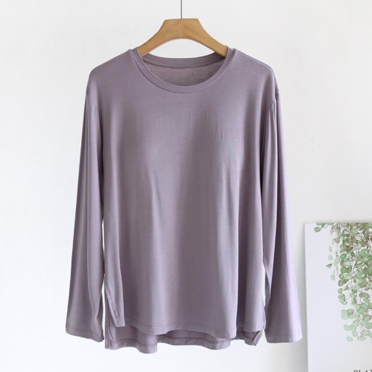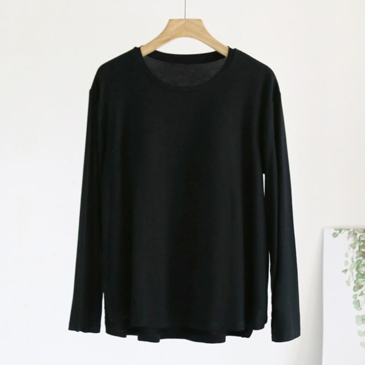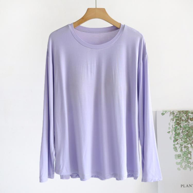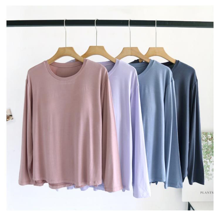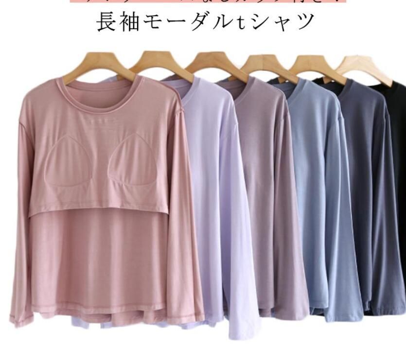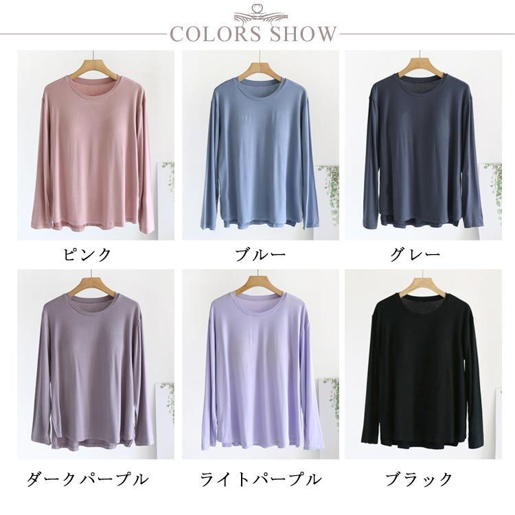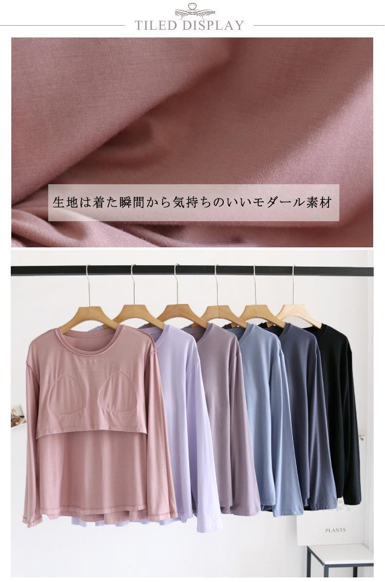 カットソー 長袖 カップ付き Tシャツ トップス ラウンドネック アンダー パット付 長袖tシャツ ロンT インナー 締め付けない 敏感肌 柔らかい 生地 透けない 一体型カップ ブラカップ 大人 ル#goudoudou4781