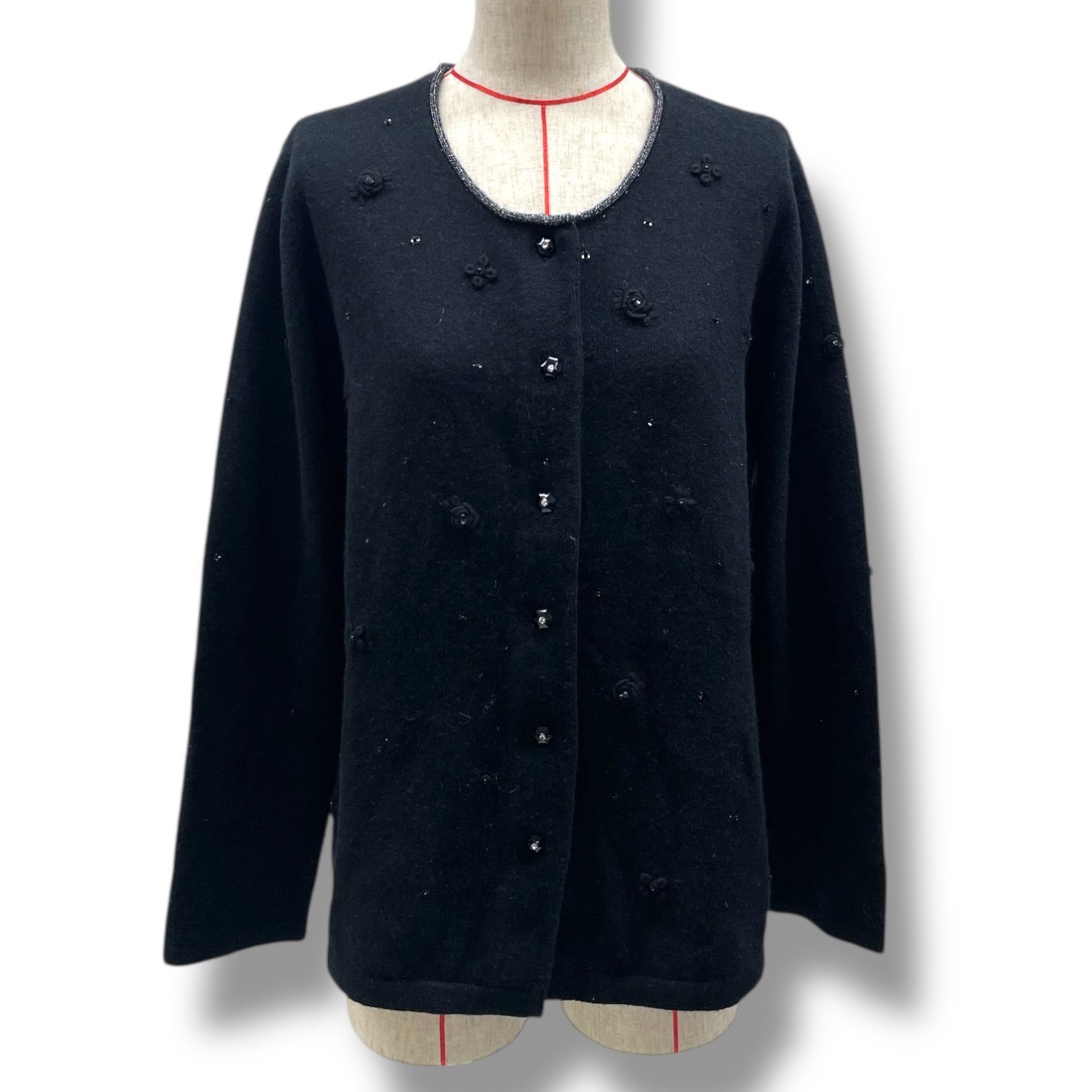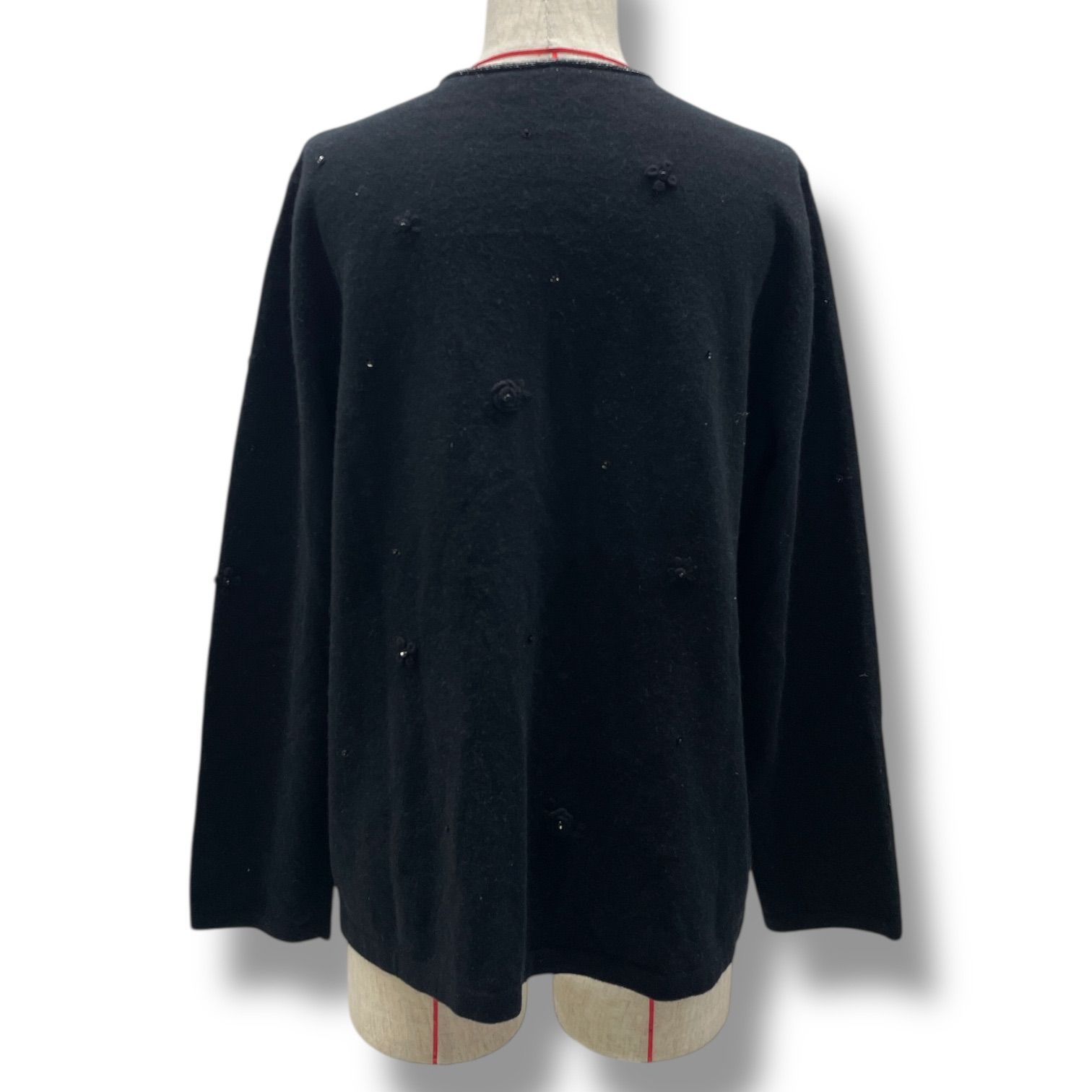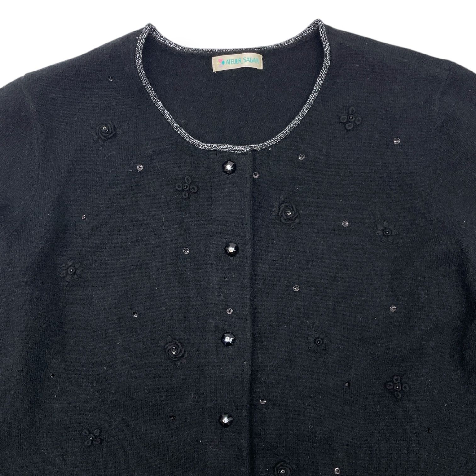 ATELIER SAGAN アトリエサガン カシミヤ 刺繍 ニットカーディガン 花柄 フラワー 羽織り 長袖 レトロ 黒 ブラック Lサイズ レディース 冬 ゴーゴー古着マルイファミリー溝口店 5 No.364