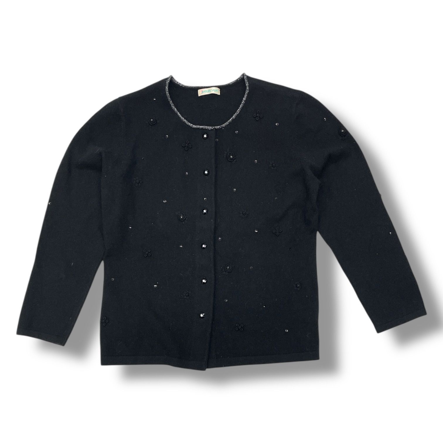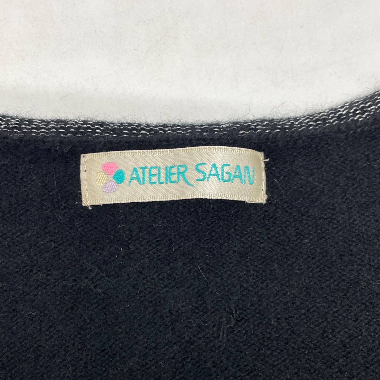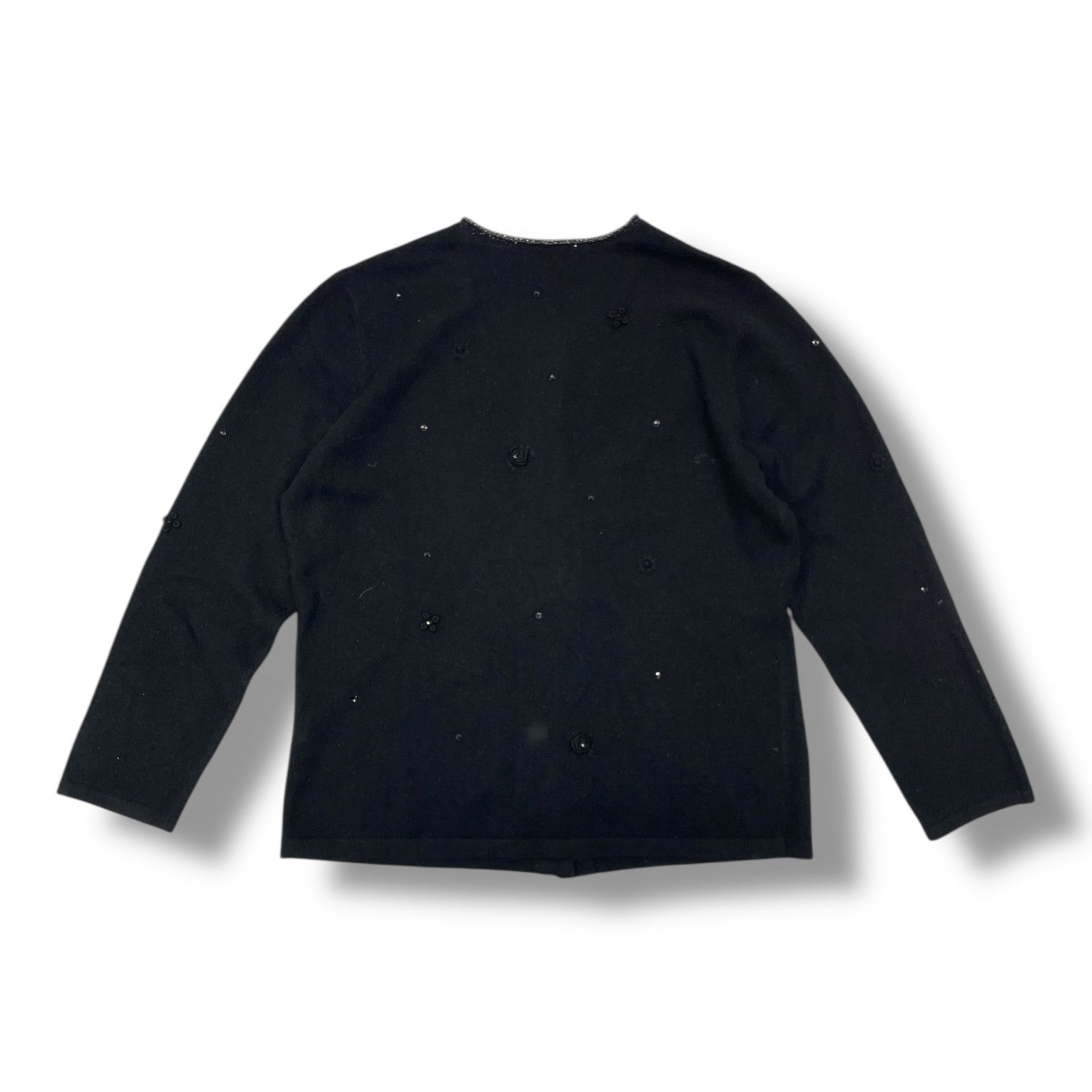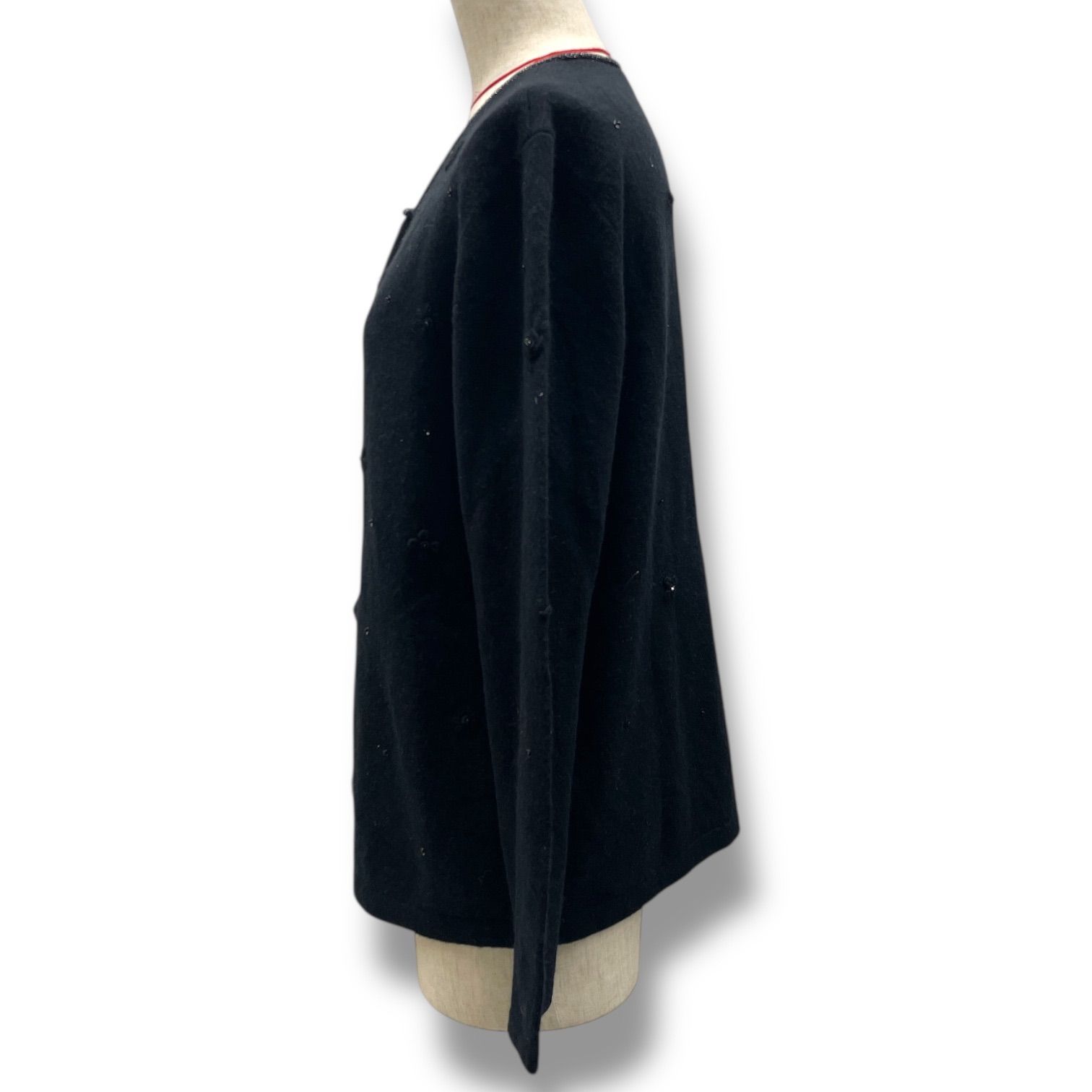 ATELIER SAGAN アトリエサガン カシミヤ 刺繍 ニットカーディガン 花柄 フラワー 羽織り 長袖 レトロ 黒 ブラック Lサイズ レディース 冬 ゴーゴー古着マルイファミリー溝口店 5 No.364