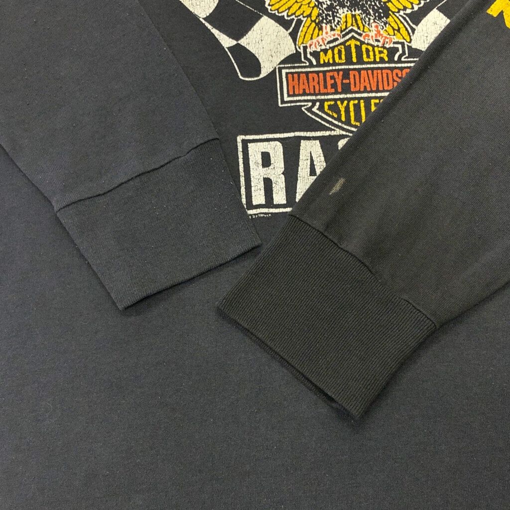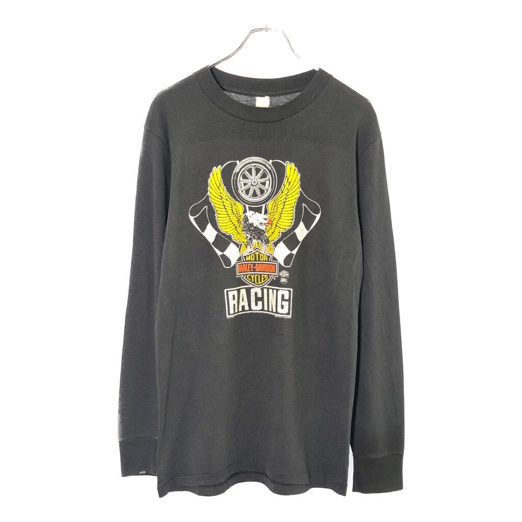 80年代 HARLEY DAVIDSON ハーレーダビッドソン モーターサイクル 長袖Tシャツ ブラック(メンズ M相当)中古 古着 V9102