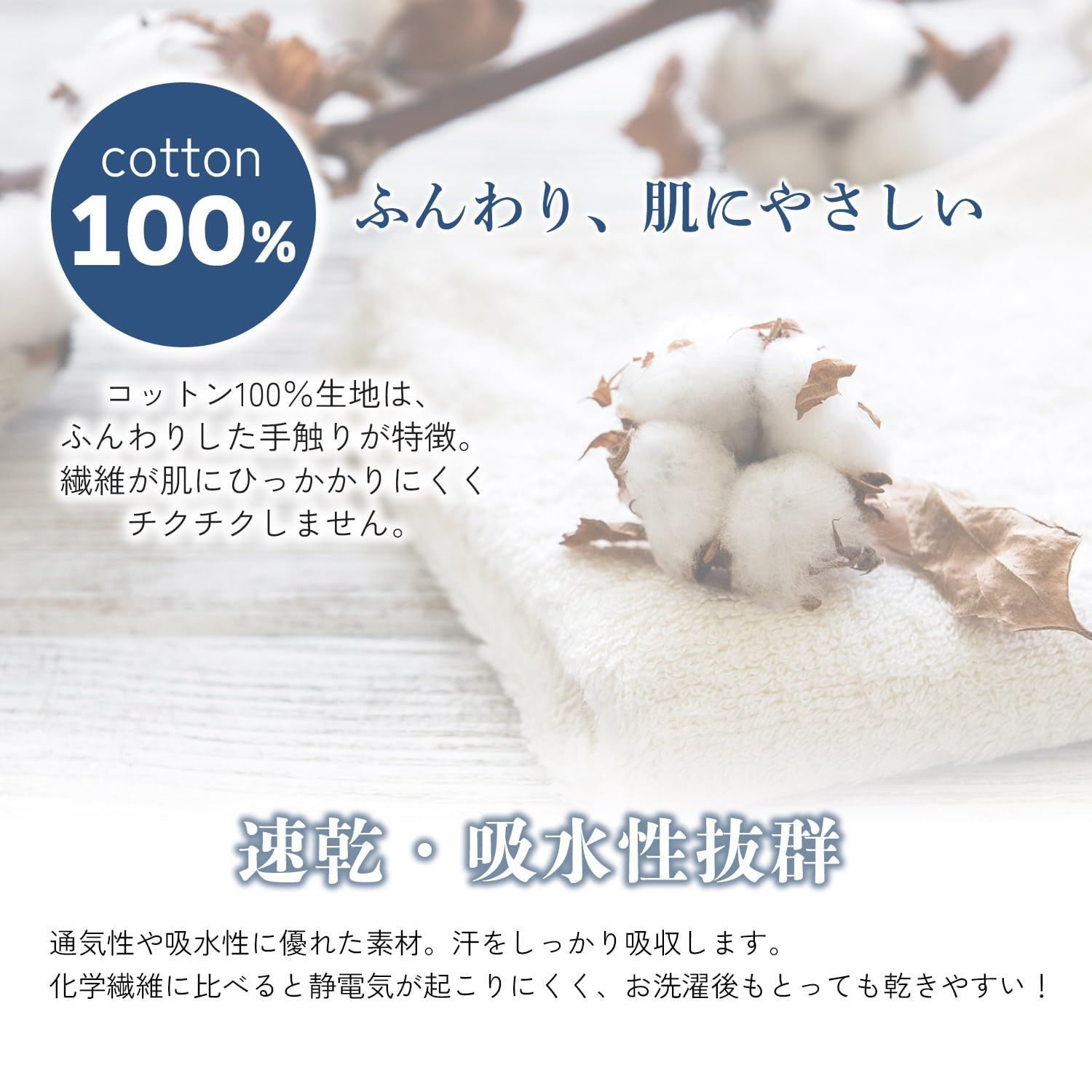 【抜群な吸水性&速乾性】厳選した綿の原材料を採用しており、抜群の吸水性と速乾性を備えております。厚手ですので洗濯物の乾きにくい時期に「バスタオル代わりに使っている」というお客様のお声もあり大変好評です。