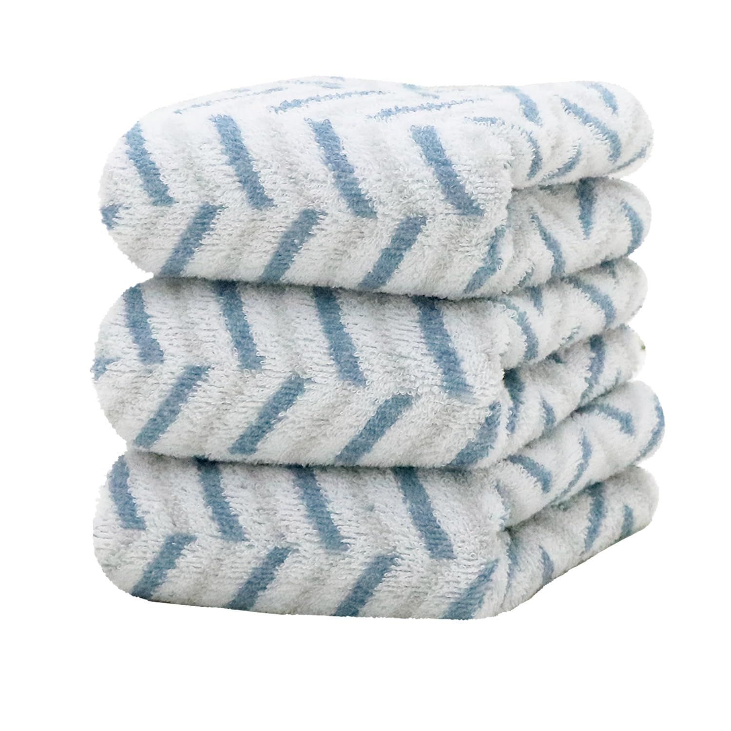 フェイスタオル タオル 3枚セット 34×80cm 綿100% 厚手 丸洗い吸水 通気性タオルケット ホテル ギフト デイリータオル バーゲン ヘリンボーン・ブルー