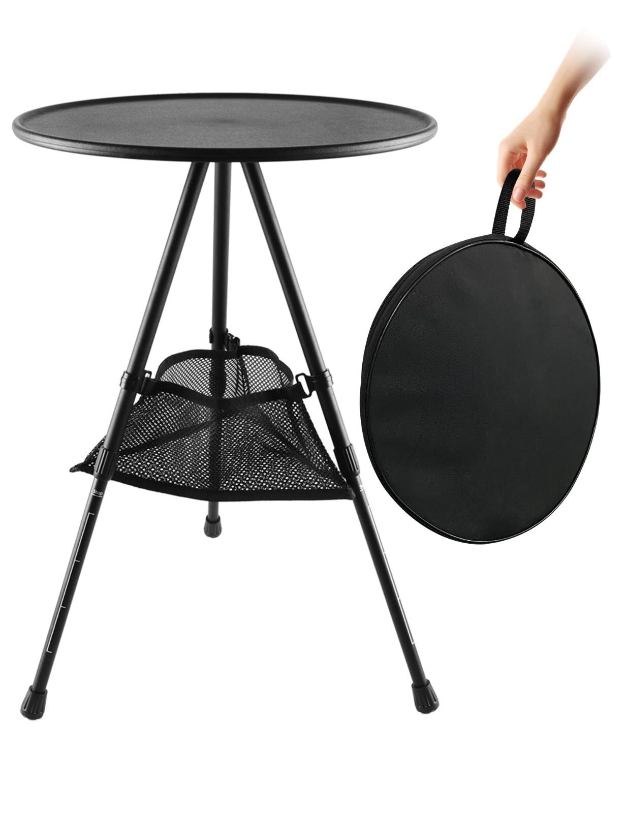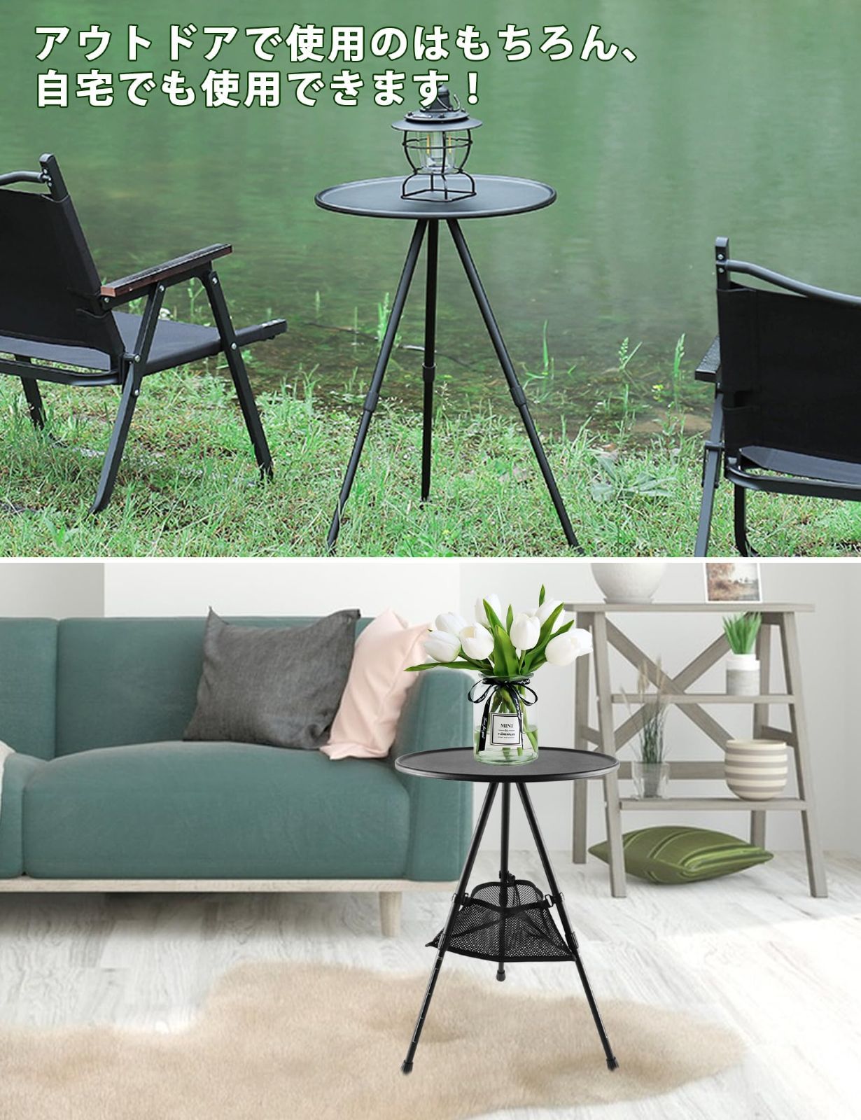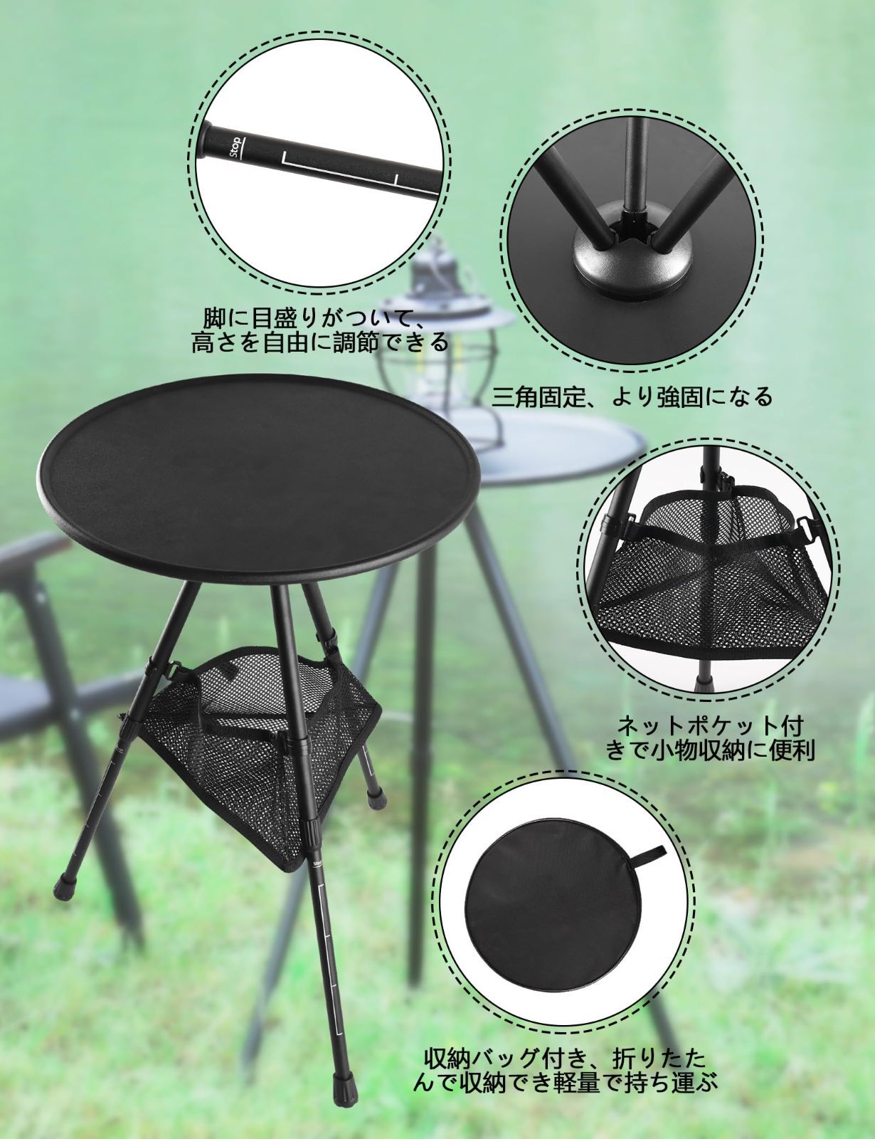 キャンプ テーブル 折り畳み アウトドア テーブル コンパクト ミニテーブル 折りたたみ ベランダ/ガーデン/屋内/屋外 サイドテーブル 高さ調整 釣り/登山/ソロキャンプ 収納バッグ付き 持ち運び (ブラック)