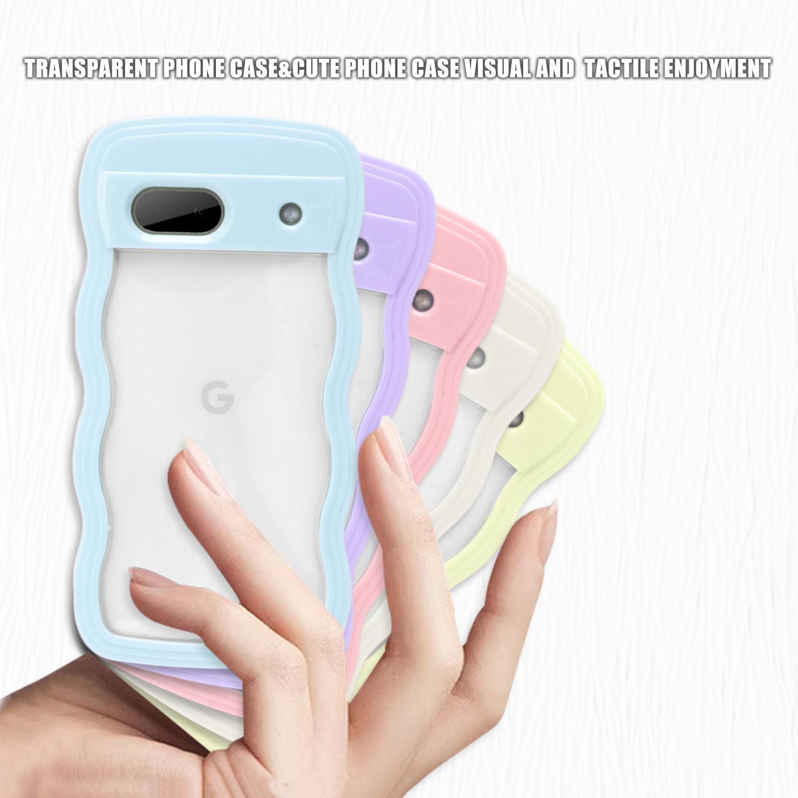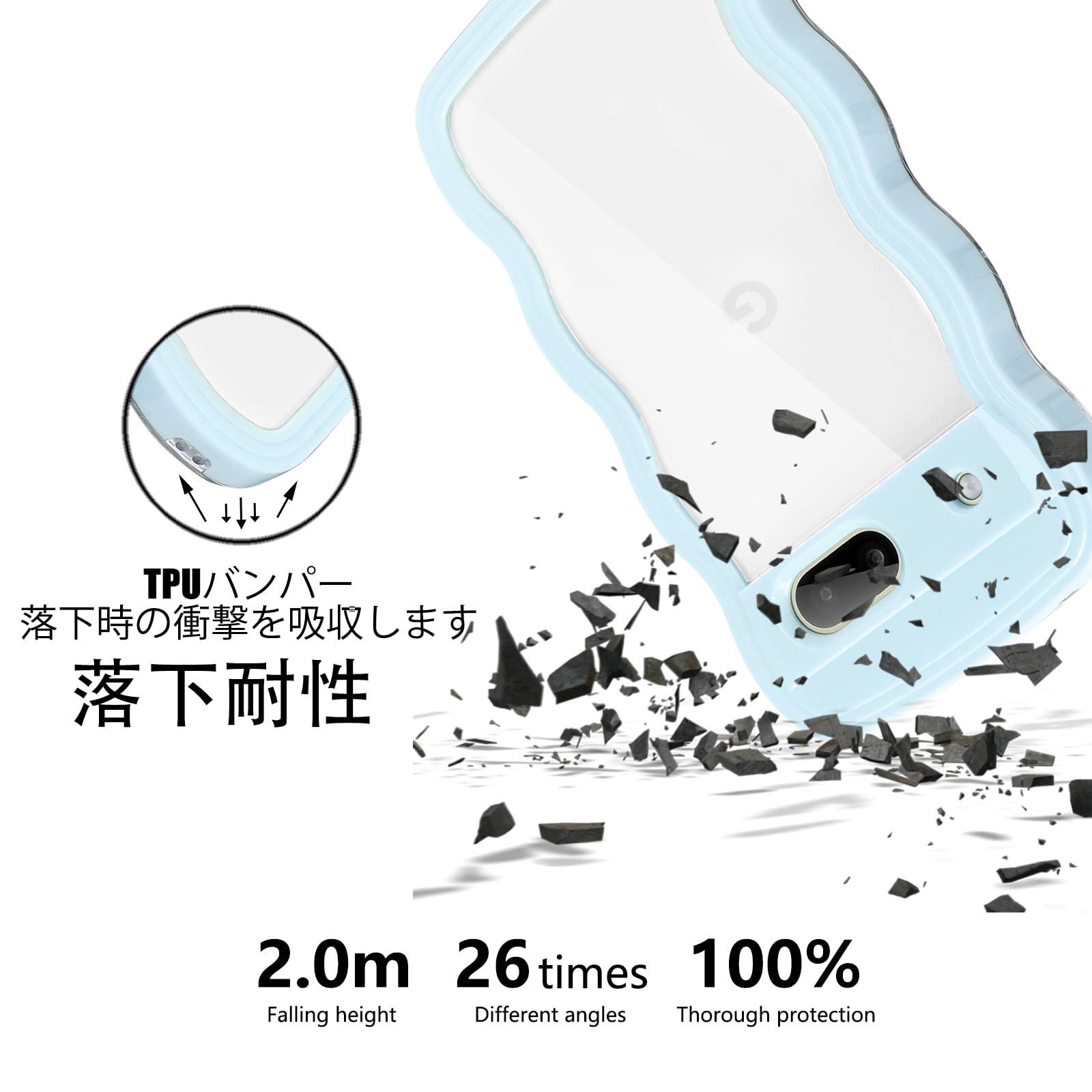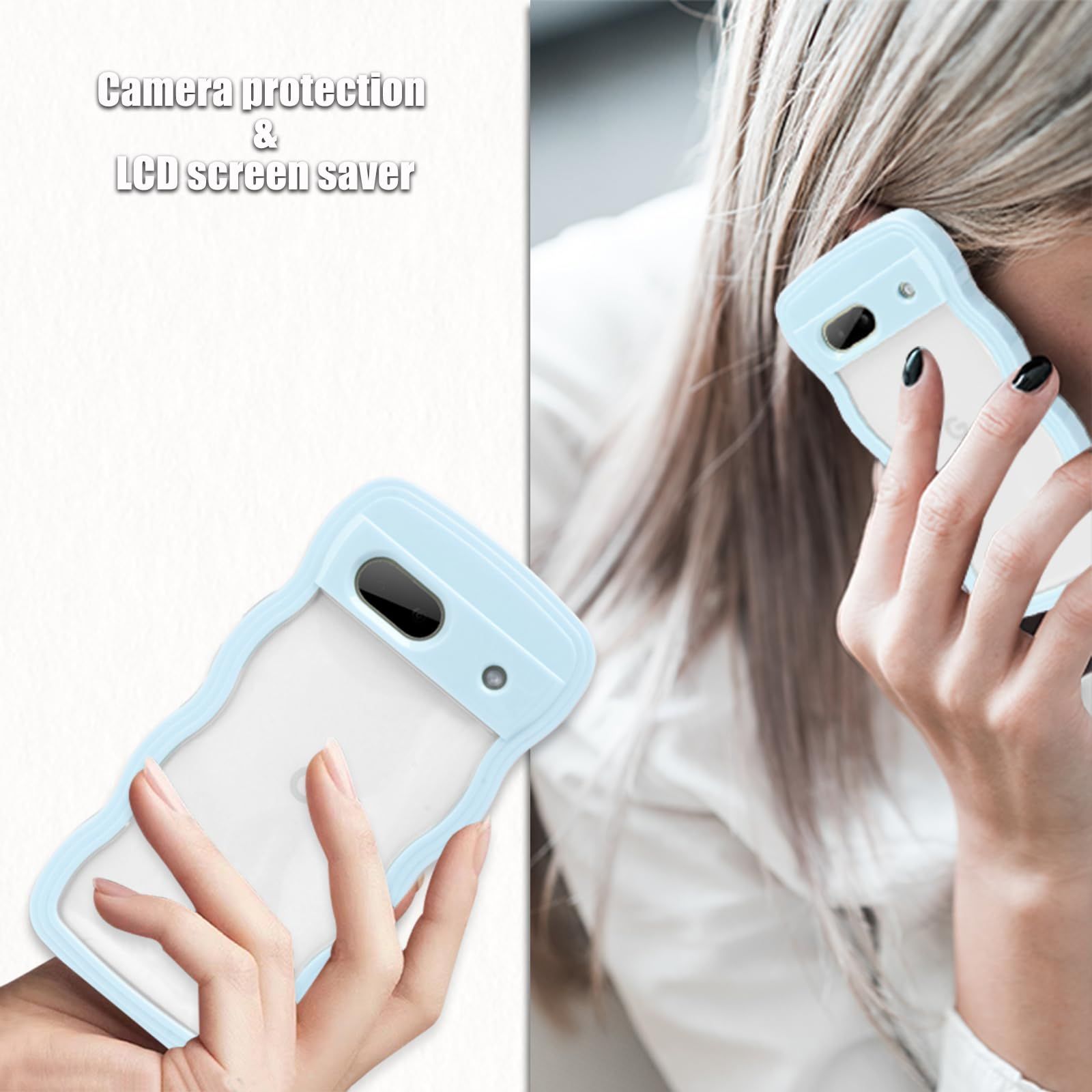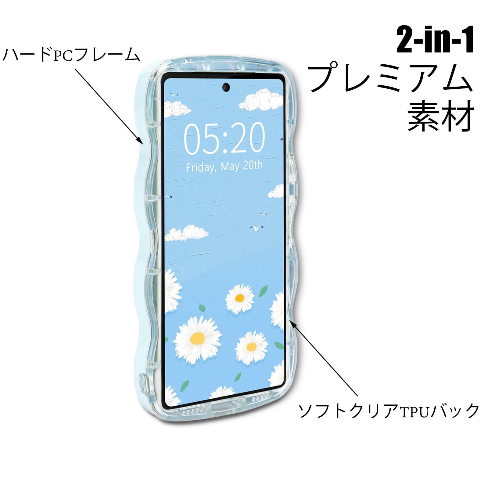 Google Pixel 6A ケース クリア ウェーブ ピクセル 6A TPU波状フレーム うねうね グーグル ピクセル6A 滑り止め スマホケースウェーブ デザイン 手にフィット 韓国 可愛い 女性用 女子向け 透明 ケースカバー 人気 落下防止 耐衝撃 ストラップホール付き グーグルピクセル6A なみなみ ワイヤレス充電対応(Google Pixel 6A-ブルー)