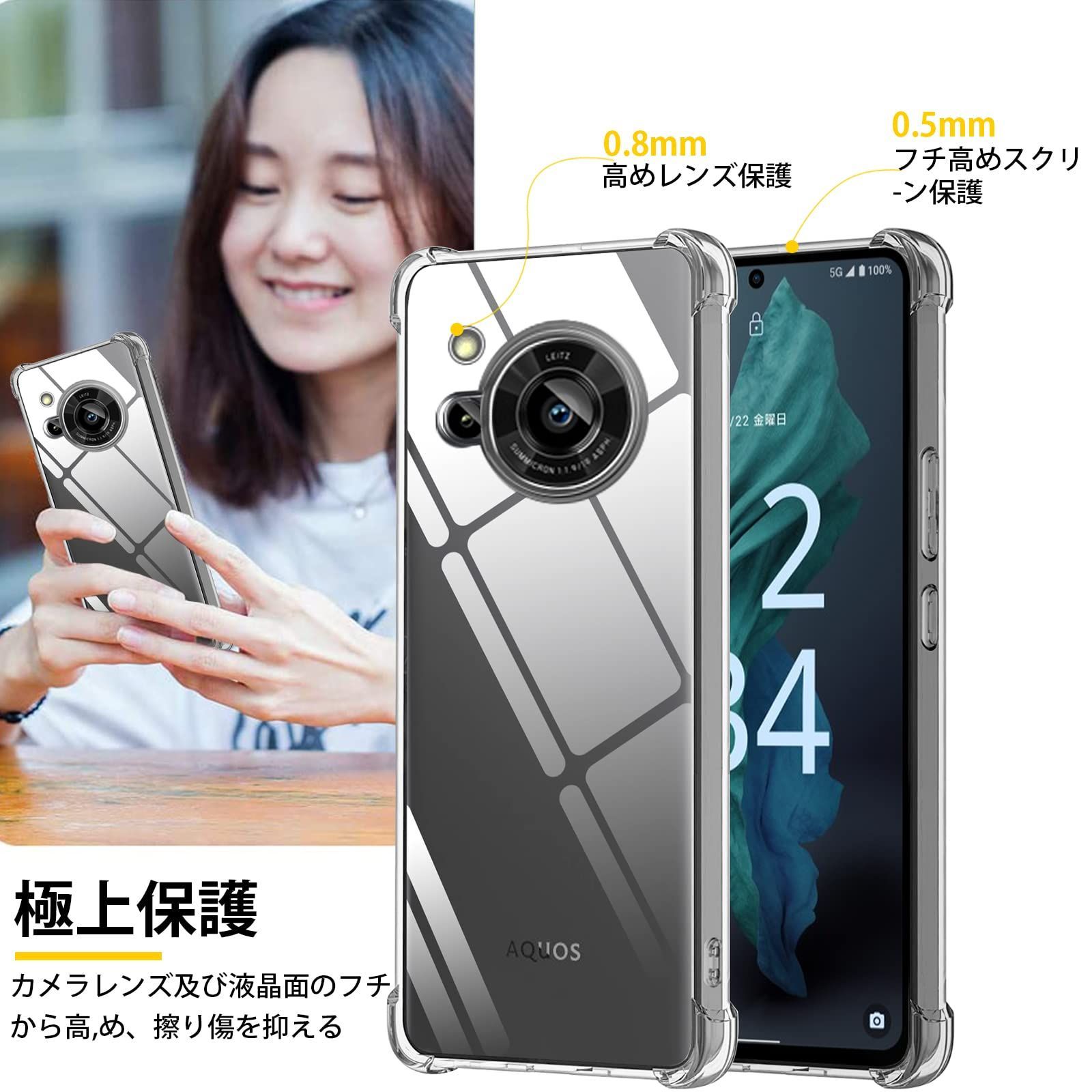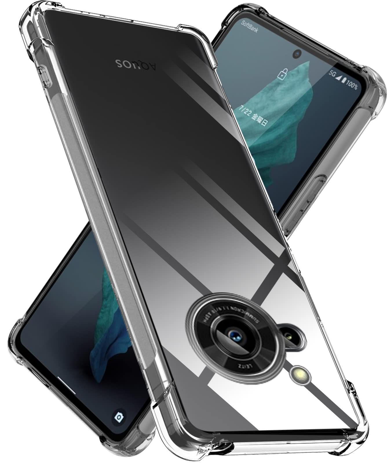 AQUOS R7 ケース TPU クリア 薄型 軽量シリコン 耐衝撃 米軍MIL規格取得 黄変防止 防塵 一体型 人気 携帯カバー (クリア)