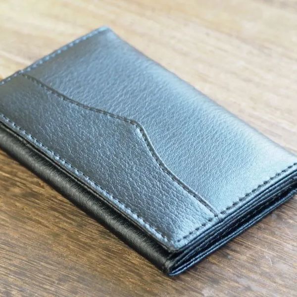 上質感のあるブラックレザー風素材を使用した、シンプルでスマートなデザインの名刺入れです。