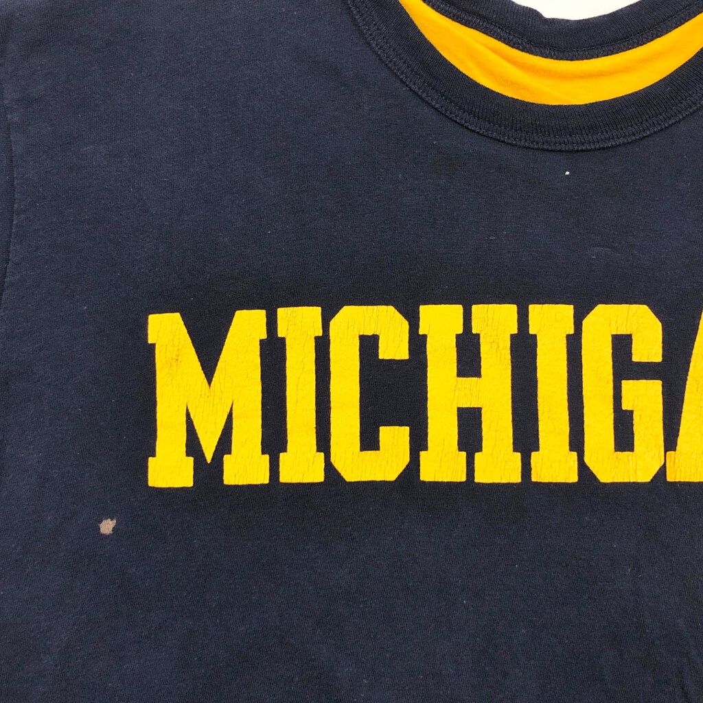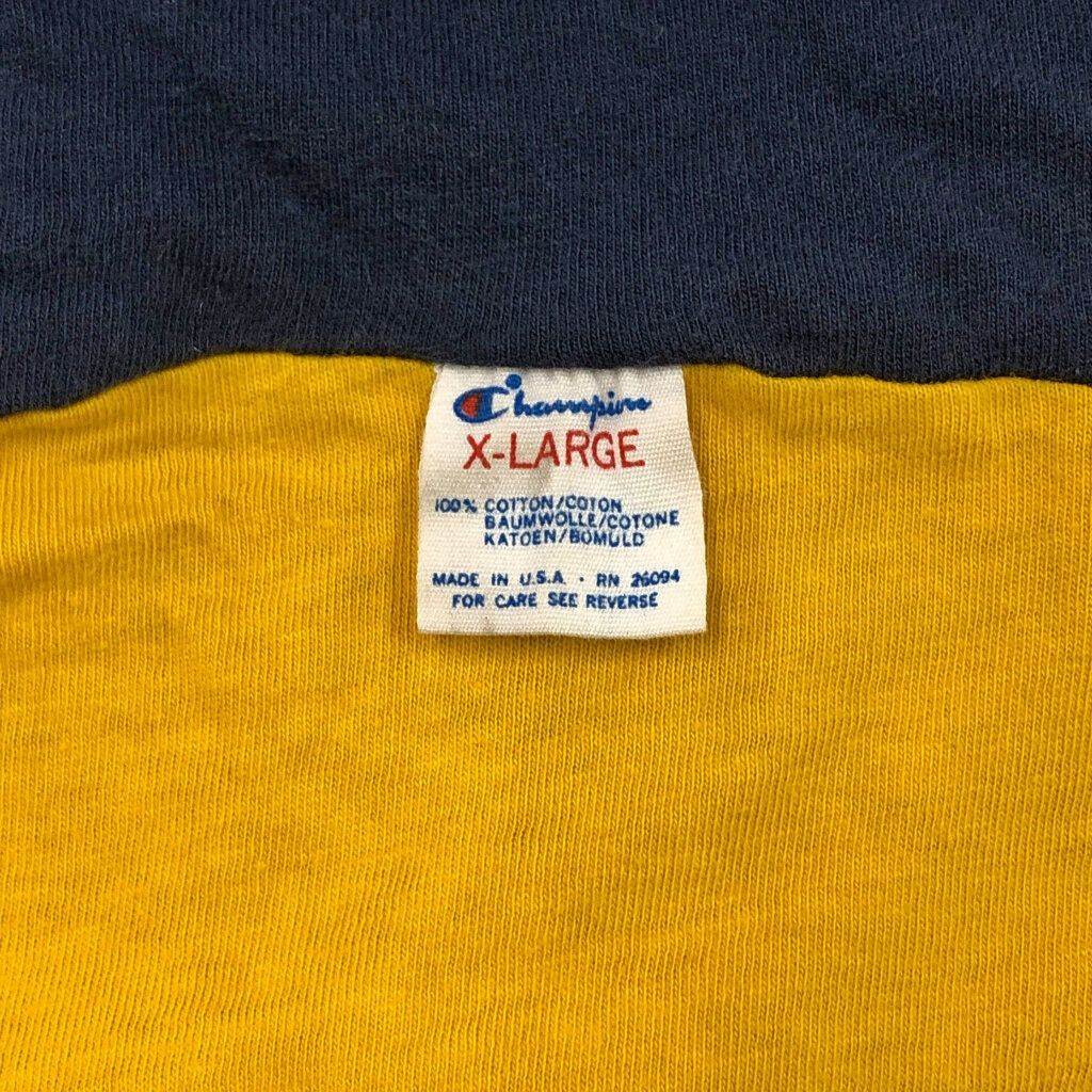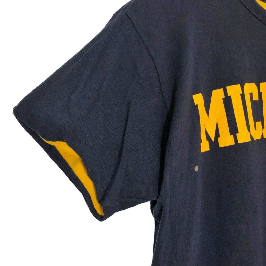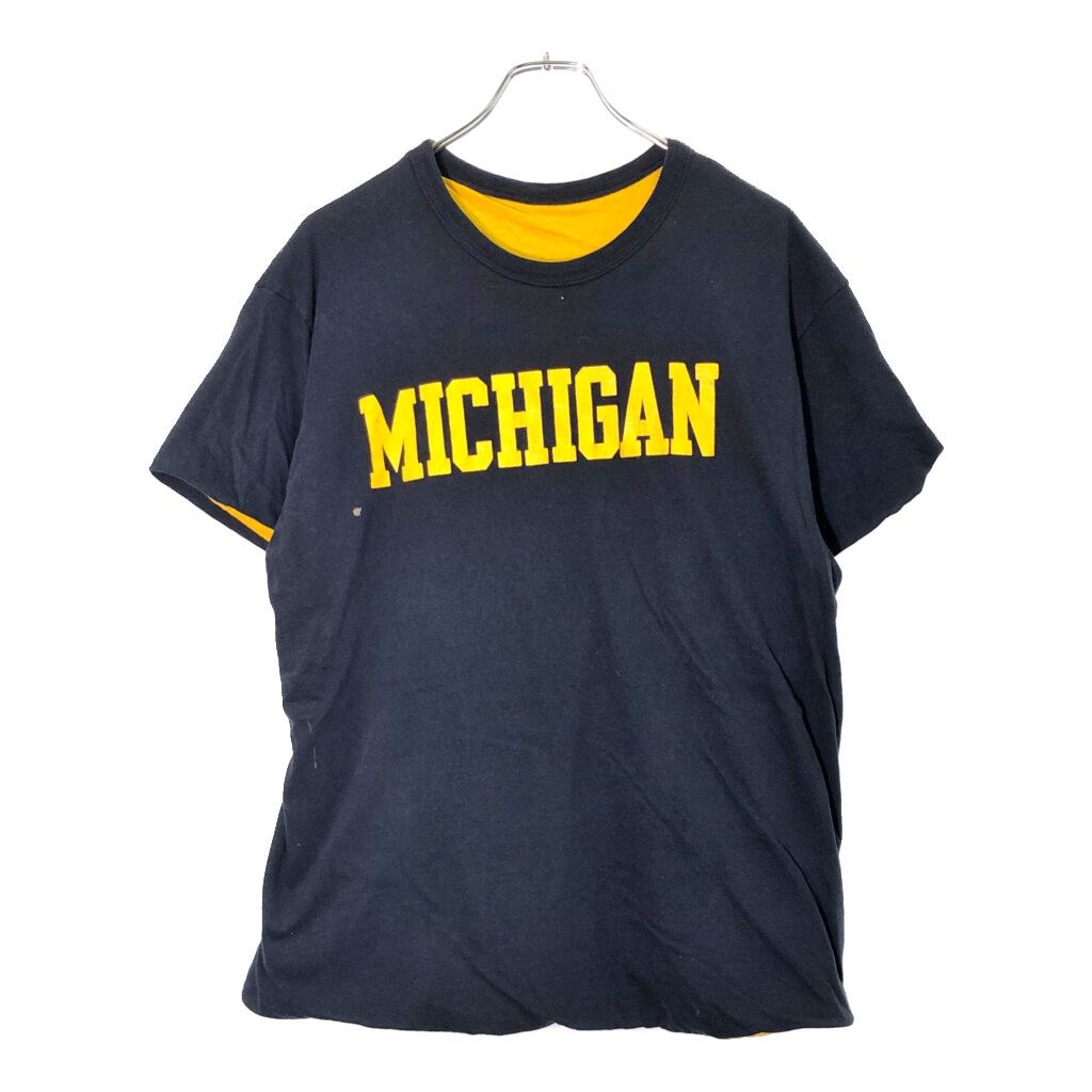 90年代 USA製 Champion チャンピオン MICHIGAN ミシガン リバーシブル Tシャツ ネイビー(メンズ XL)中古 古着 V9107