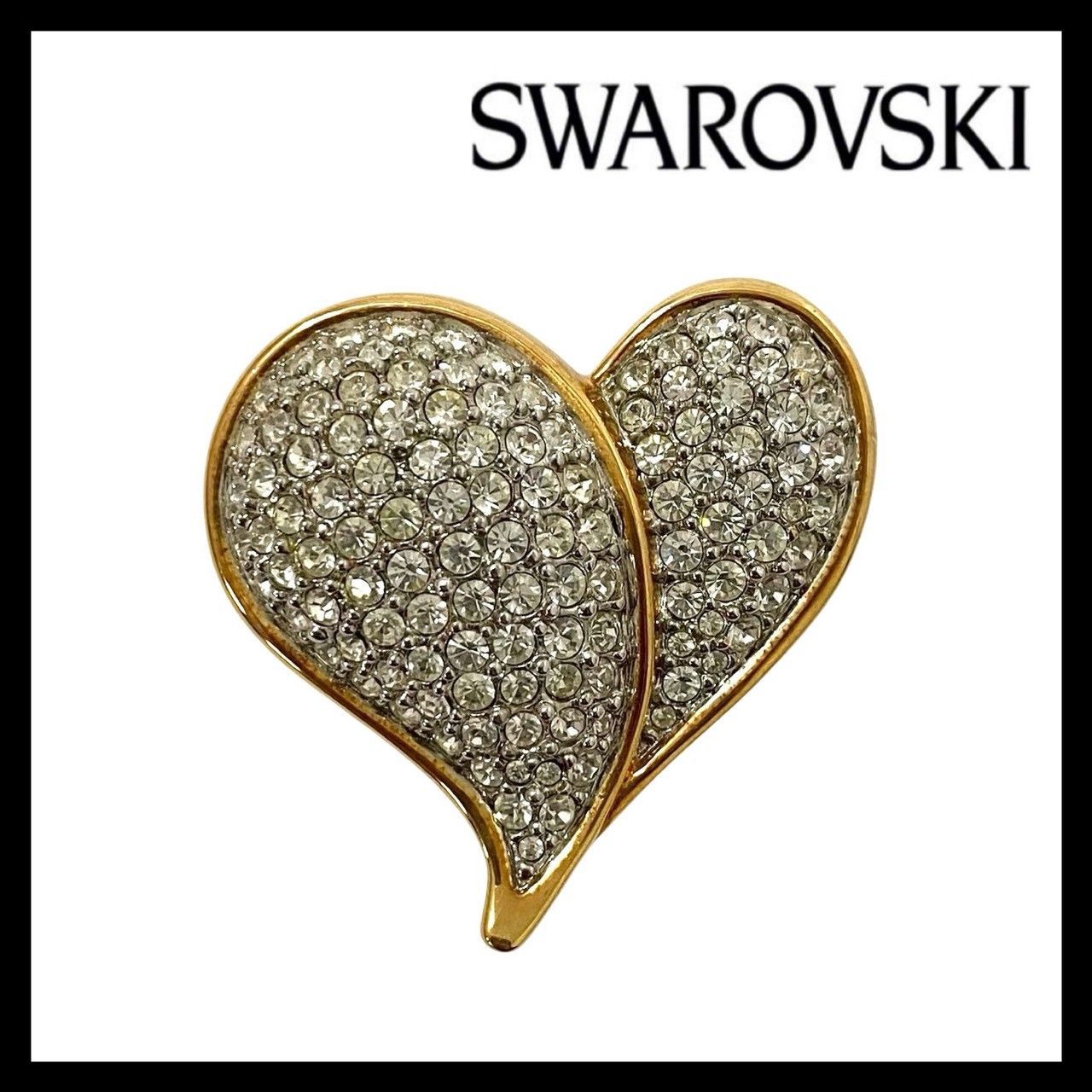 M【SWAROVSKI】ハート ブローチ ゴールド/金カラー クリスタル パヴェ ラインストーン コサージュ スワロフスキー (60736S6a)