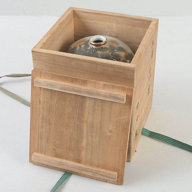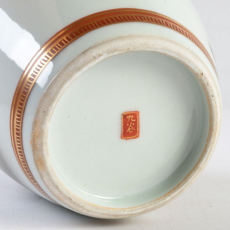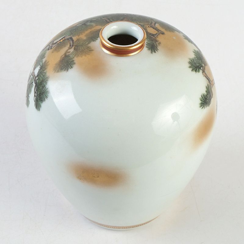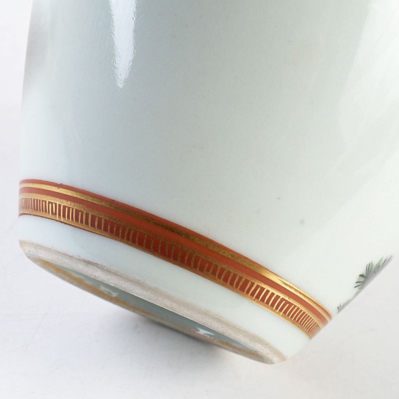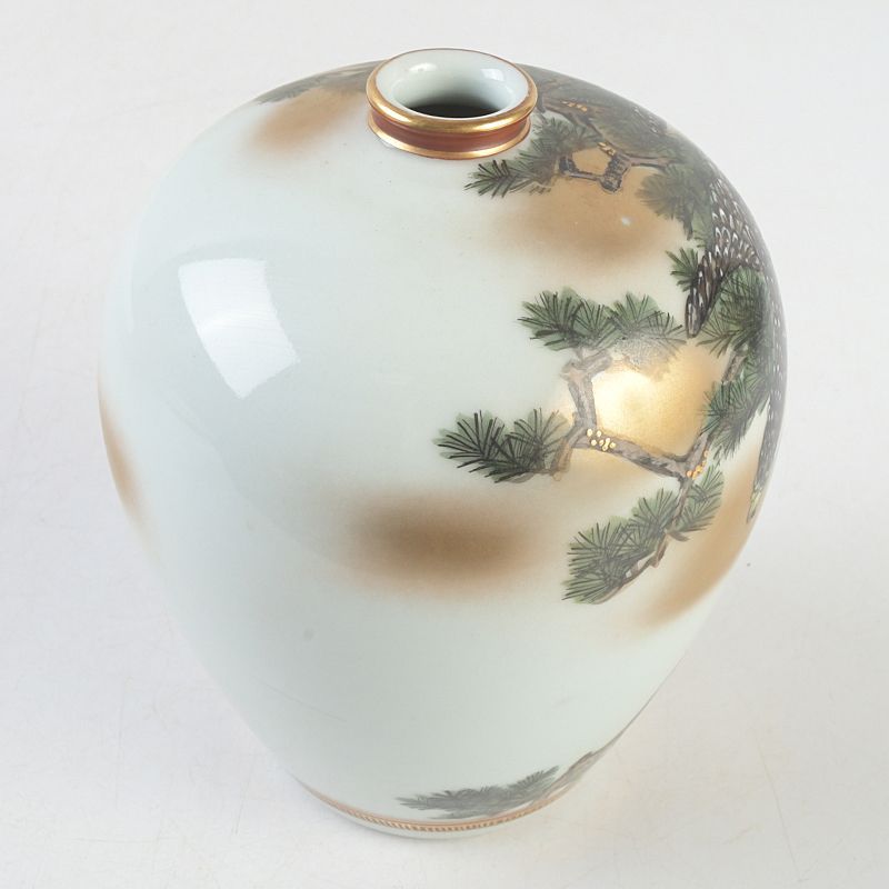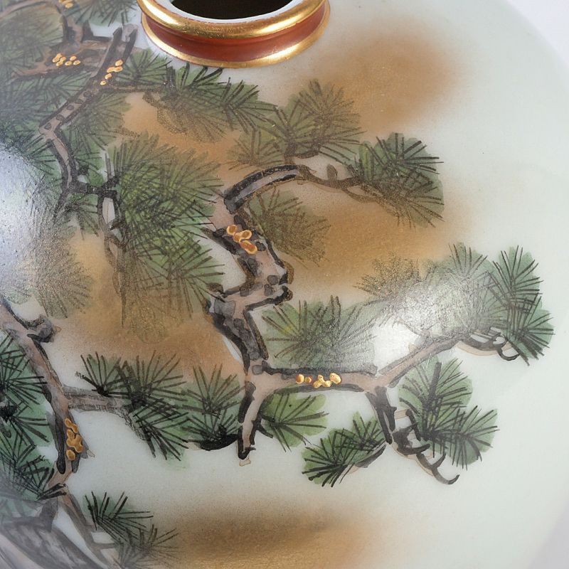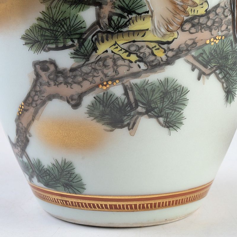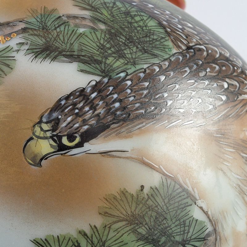 九谷焼 松寿堂 色絵金彩 松鷹文 花瓶 花生 共箱 C S493
