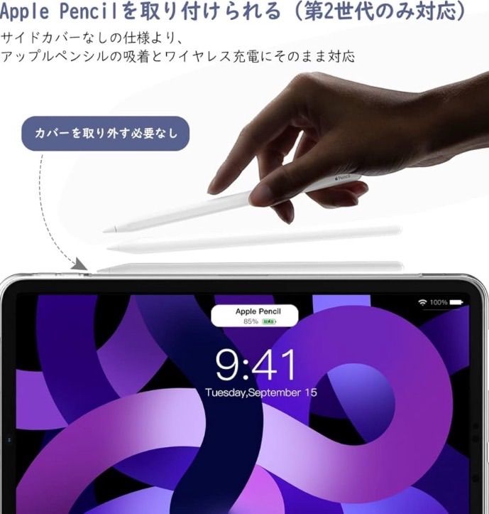 「完璧に装着」ケースをアイパッドに装着したままで全ての操作をできます。お客様のご大切なアイパッドにピッタリフィットし、しっかりと守ってくれます。ApplePencil USB-C(iPad Air 11インチ用)の磁気吸着、Pencil Pro(iPad Air 11インチ用)及び ApplePencil第2世代(iPad Air 第5世代/第4世代 10.9インチ用)のワイヤレス充電に対応できます。
