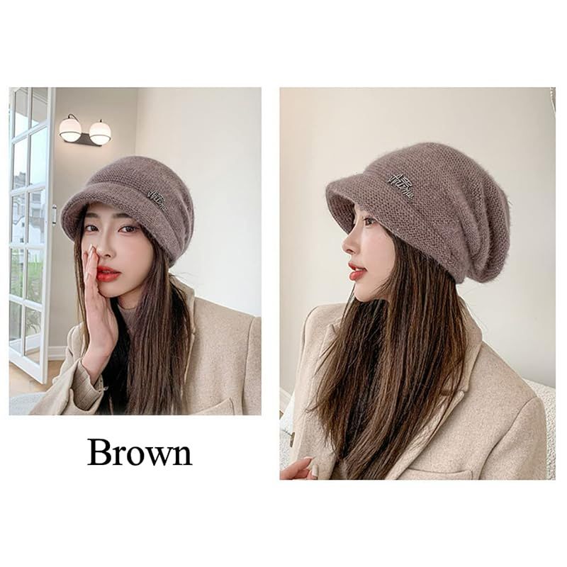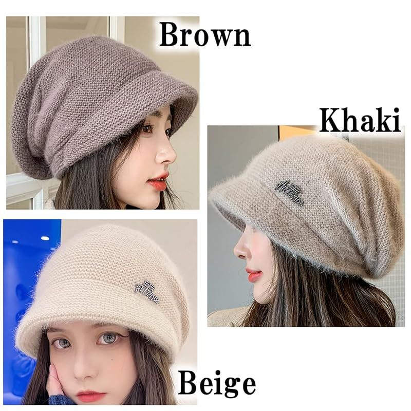 商品名:【新品】 [FARFADET] ニット帽 キャスケット ニットキャップ つば付き モヘア 暖かい 防寒 保温 かわいい おしゃれ ふわふわ 帽子 (ブラウン)
