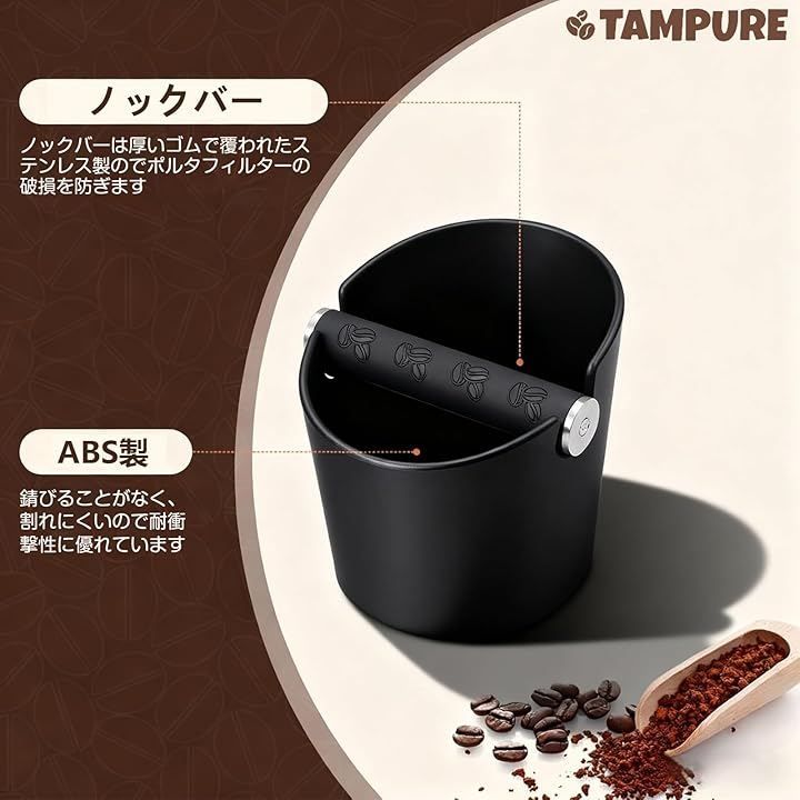 エスプレッソノックボックスは、タンパーやミルクピッチャーに並ぶバリスタ用品です。
