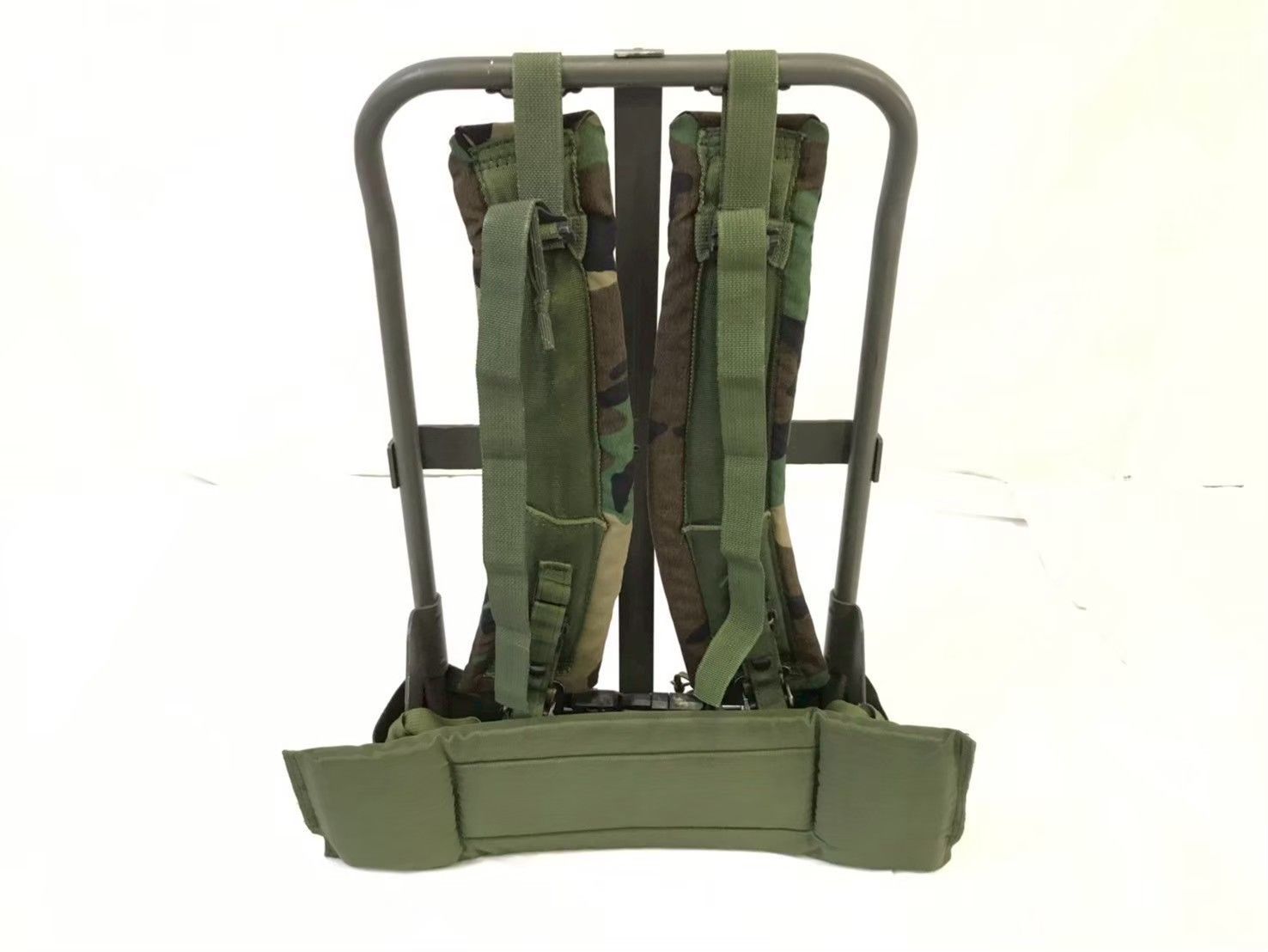 ☆ メインバックの荷重を分散させて身体への負担を減らすためのフレーム、ハーネス、ヒップベルトがセットされていますが、こちらは US-ARMY(米陸軍)放出の ALICE(All-Purpose Lightweight Individual Carrying Equipment)LC-1に含まれるフィールドパックフレームです。