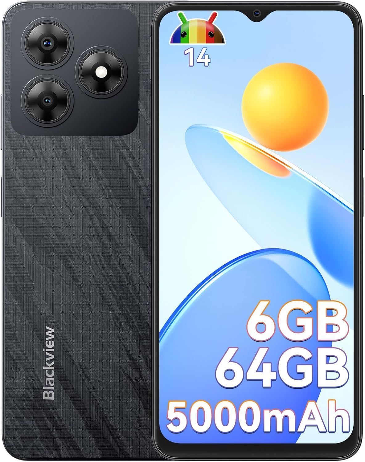 [2025 初登場 SIMフリー スマホ] Blackview Wave8C シムフリー スマホ 本体 4G対応 Android 14 Go スマホ 日本版 6GB RAM+64GB 2TB拡張可能 6.56インチ 大画面 8MP+13MPカメラ 5000mAh 大容量バッテリー 顔認証 OTG GPS 技適認証済 ブラック